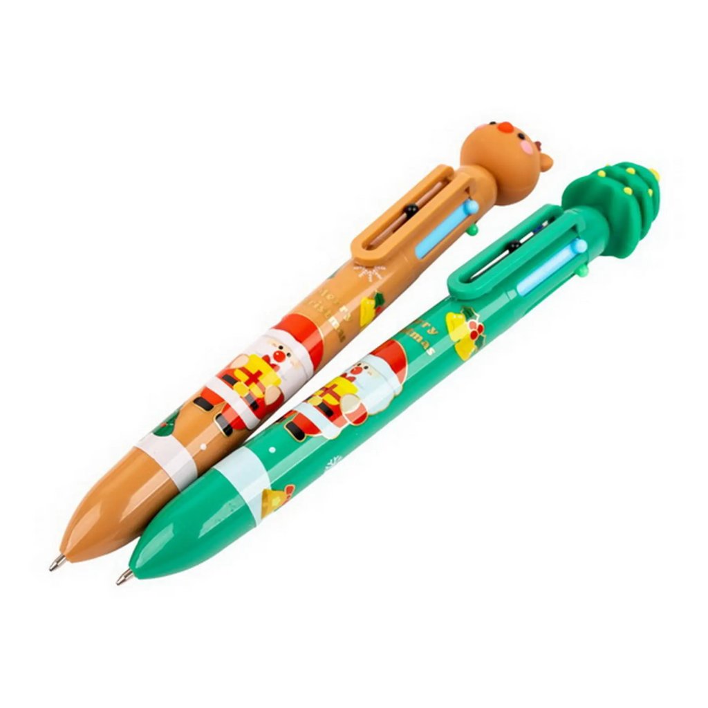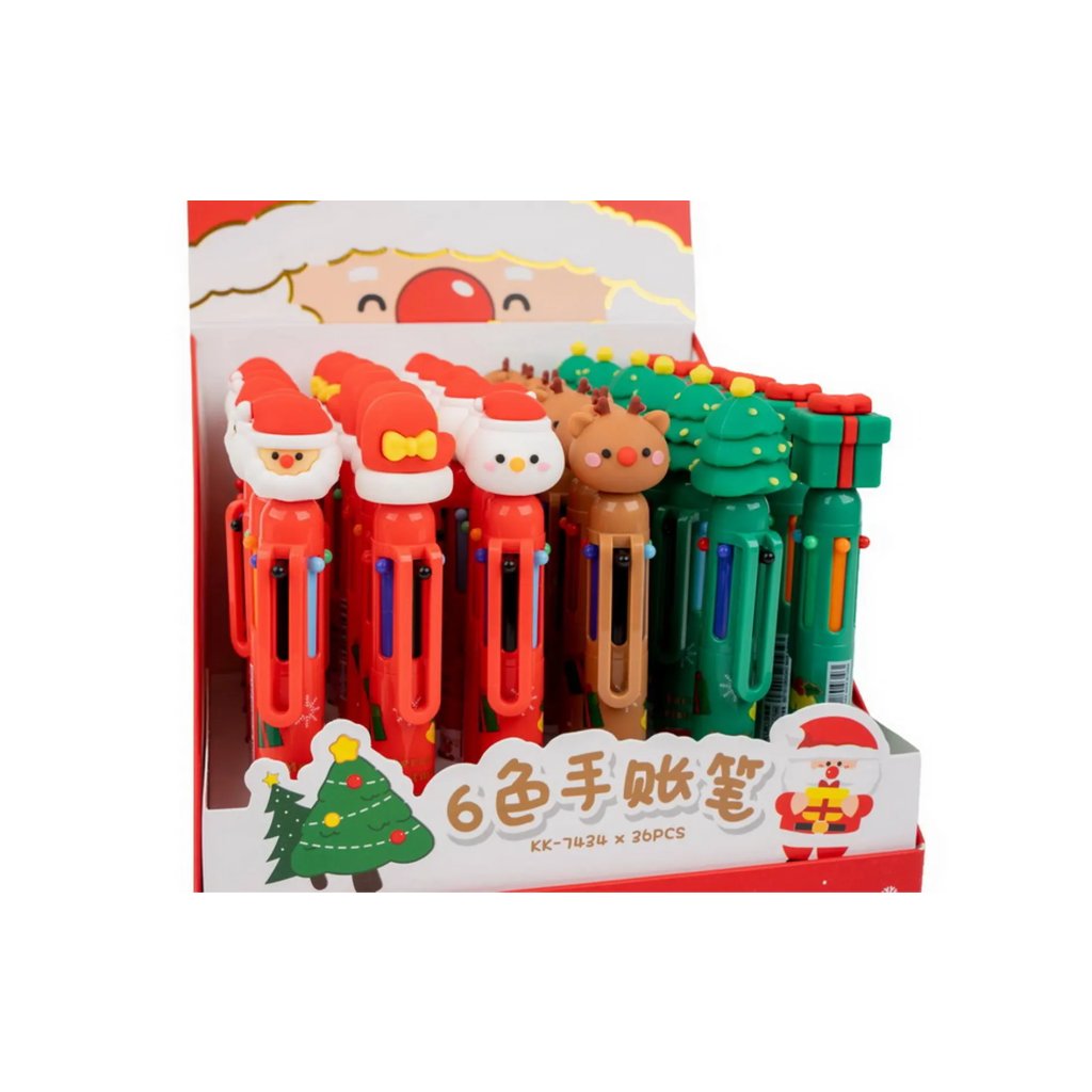 Jedná se o šestibarevné kuličkové pero s veselými vánočními motivy (např. Santa Claus, sněhulák, vánoční stromek a sob). Pero má plastové tělo a je vybaveno stiskacím mechanismem pro snadnou volbu barev. Obsahuje šest barevných náplní (červená, modrá, zelená, černá, oranžová, fialová). Píše s šíří stopy 0,7 mm. Cena je uvedena za 1 kus. Pero je dodáváno v mixu vzorů. Pokud vám záleží na konkrétním motivu, specifikujte jej v poznámce objednávky. Je skvělým dárkem nebo doplňkem pro vánoční psaní.Doplňkové parametry