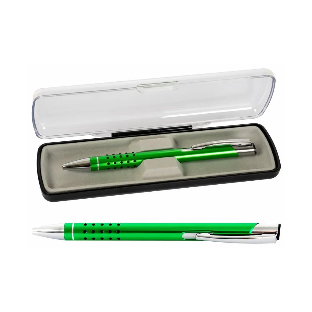 Tato dárková souprava Veno rubber je ideálním dárkem pro každého, kdo ocení praktické psací potřeby. Skládá se z celokovového kuličkového pera v elegantním světlo zeleném designu s gumovými výstupky, které je uloženo v dárkové krabičce. Pero má stiskací mechanismus a používá vyměnitelnou náplň typu F-Parker, která píše modrým inkoustem o šířce stopy 0,7 mm. Gumový úchop s výstupky zajišťuje pohodlné a příjemné držení. Celý set je dodáván v dárkové krabičce, což z něj dělá perfektní dárek pro různé příležitosti.Doplňkové parametry