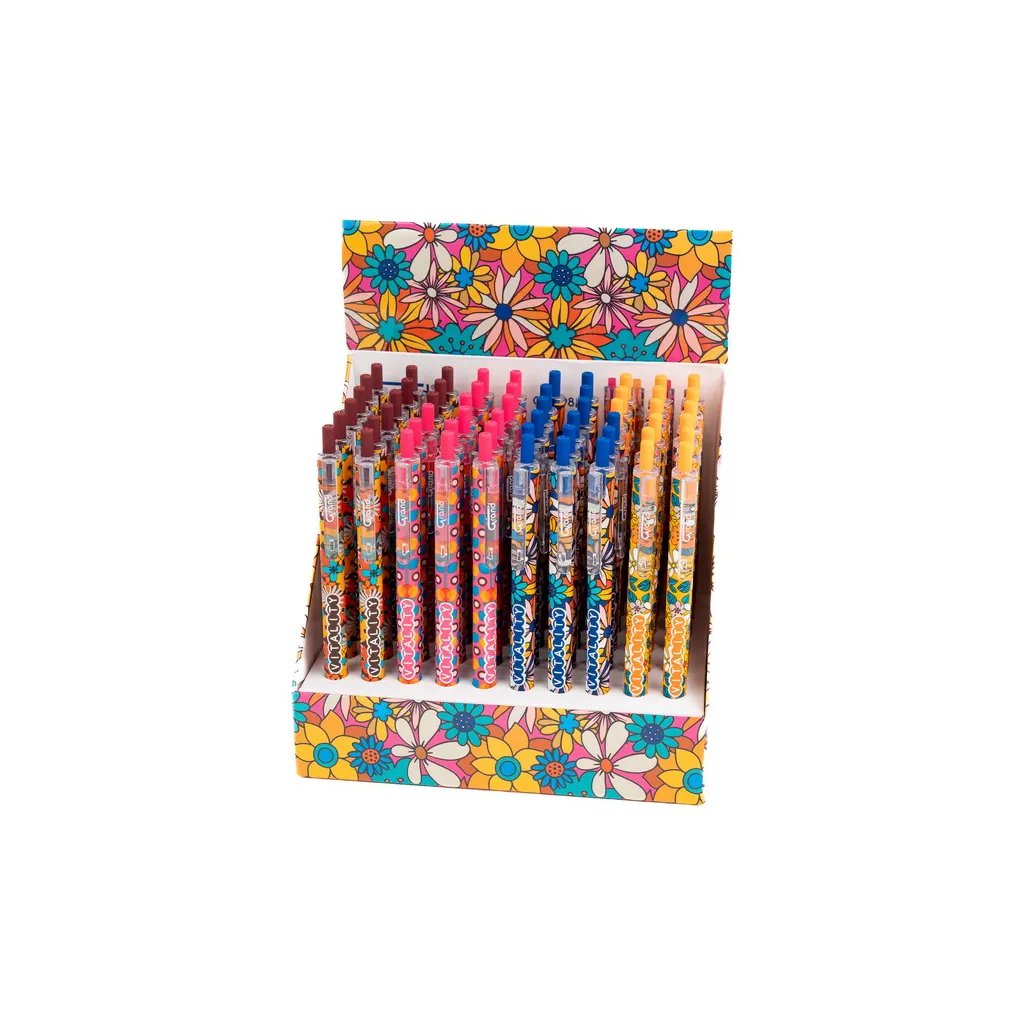 Toto plastové kuličkové pero s výrazným květinovým vzorem vnese barvy do každého dne. Je vybaveno praktickým stiskacím mechanismem a pro plynulé psaní využívá kvalitní modrý semi-gelový inkoust. Díky jehlovému hrotu o šíři stopy 0,5 mm je pero ideální pro jemné a přesné psaní. Pero je kompatibilní s vyměnitelnou náplní F-411. Produkt je dodáván v atraktivním mixu barev. Upozornění: Pokud máte zájem o konkrétní motiv, uveďte jej prosím do poznámky v objednávce.Buďte první, kdo napíše příspěvek k této položce.