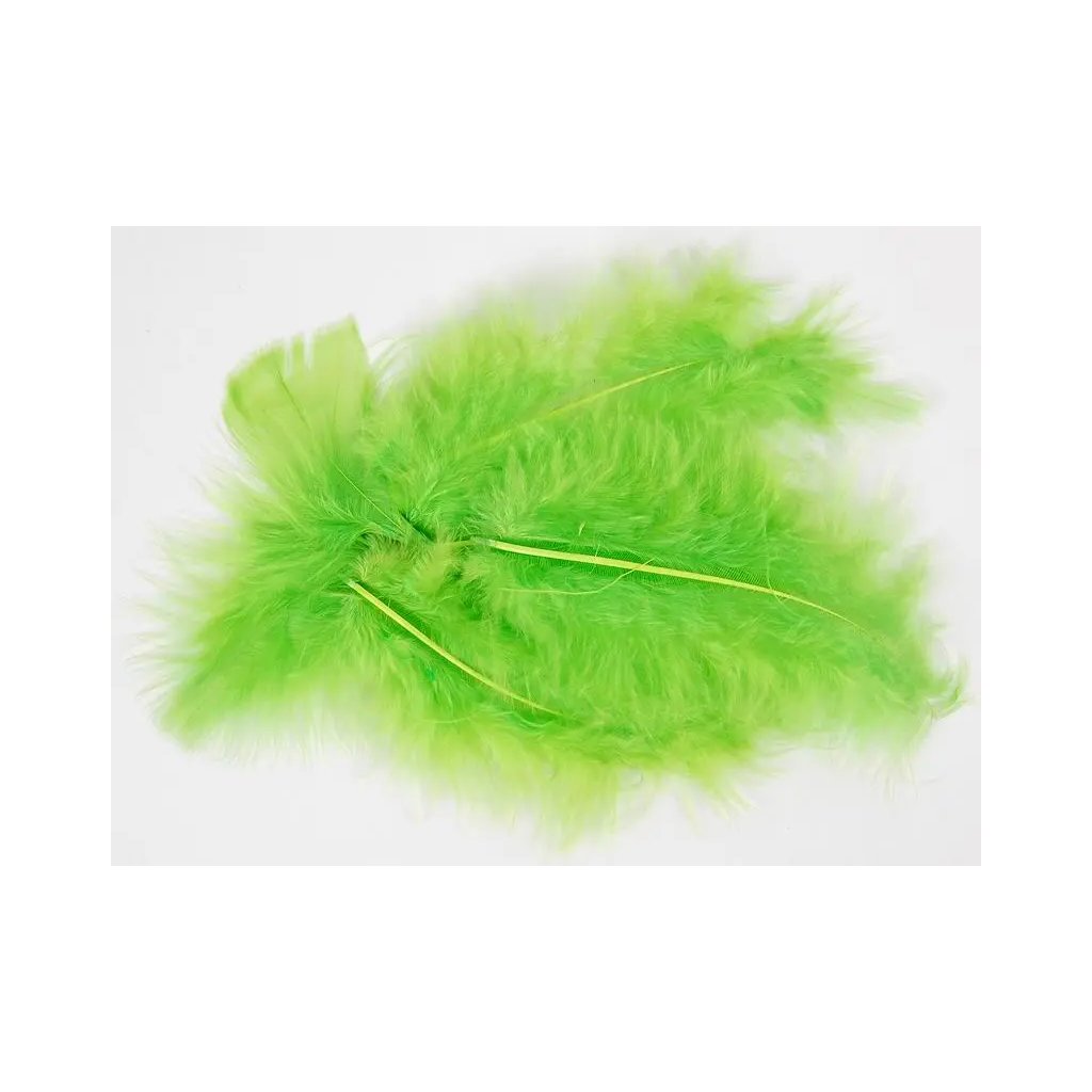 Jedná se o 10 g balení zelených pírkek, která jsou určená k dekoraci. Pírka mají délku 14 až 18 cm a dají se použít například pro scrapbooking, výrobu lapačů snů, do aranžmá, ke zdobení kostýmů nebo masek, pro kreativní projekty nebo jako doplněk do vázy.Doplňkové parametry