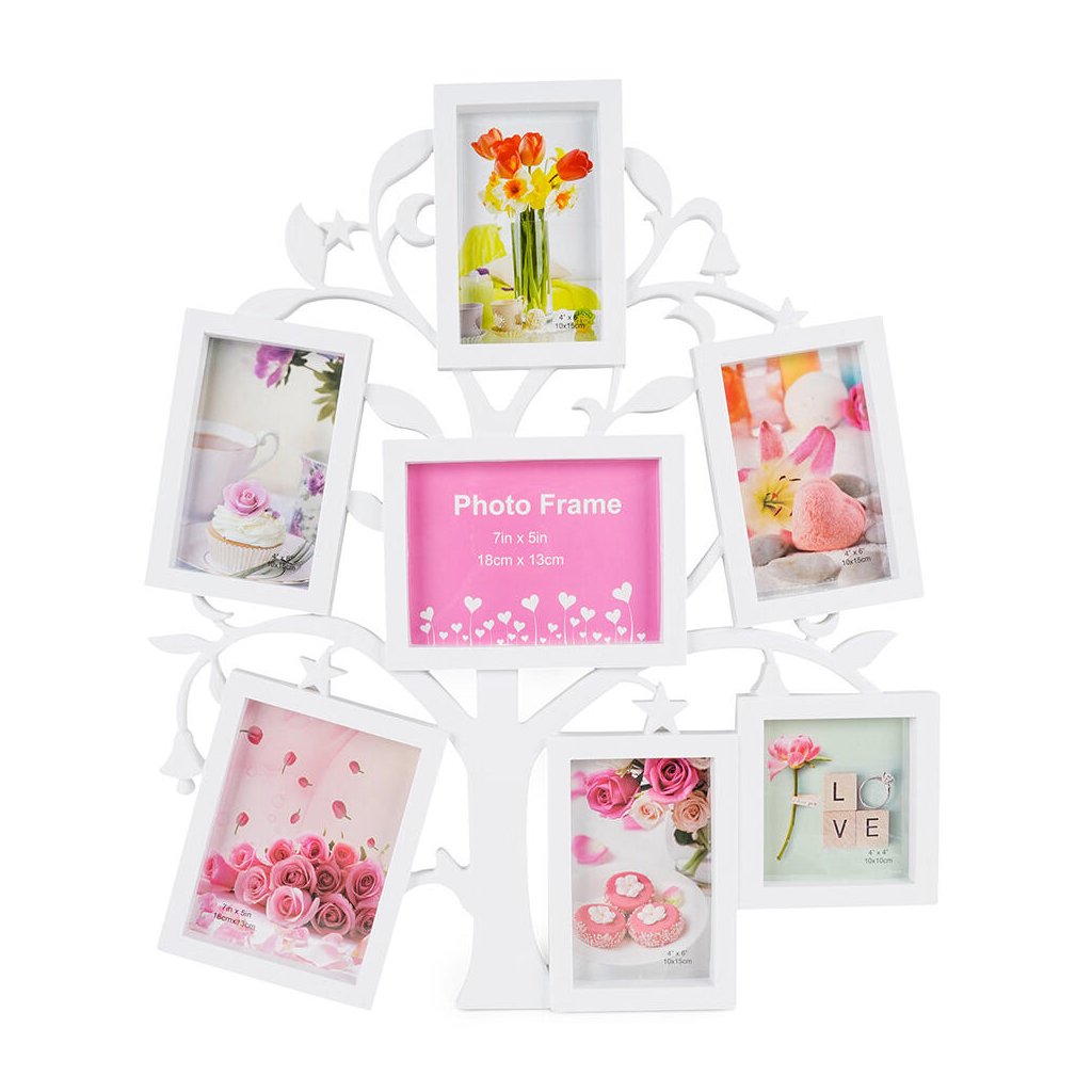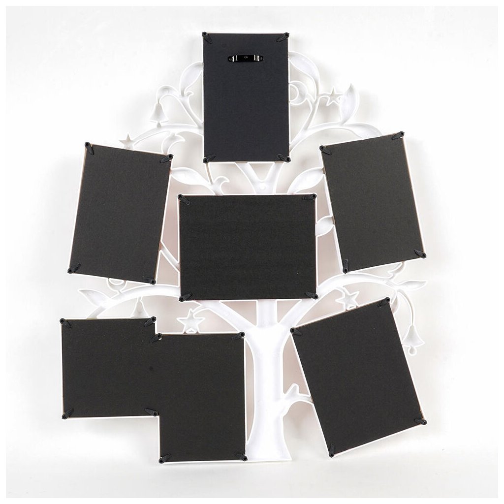 Vzpomínejte na své nejkrásnější okamžiky s tímto originálním plastovým fotorámečkem Gallery v bílém provedení. Rámeček má tvar stromu, v jehož větvích jsou umístěny rámečky na fotografie. Celek tak působí jako rodokmen. Rámeček je určen na celkem 7 fotografií – 4 fotografie o rozměrech 10 x 15 cm, 2 fotografie o rozměrech 13 x 18 cm a 1 fotografii o rozměrech 10 x 10 cm. Celý rámeček má rozměr 53,5 x 45 cm a je určen k zavěšení na zeď. Fotografie se vkládají jednoduše ze zadní strany a jsou chráněny plexisklem.Doplňkové parametry