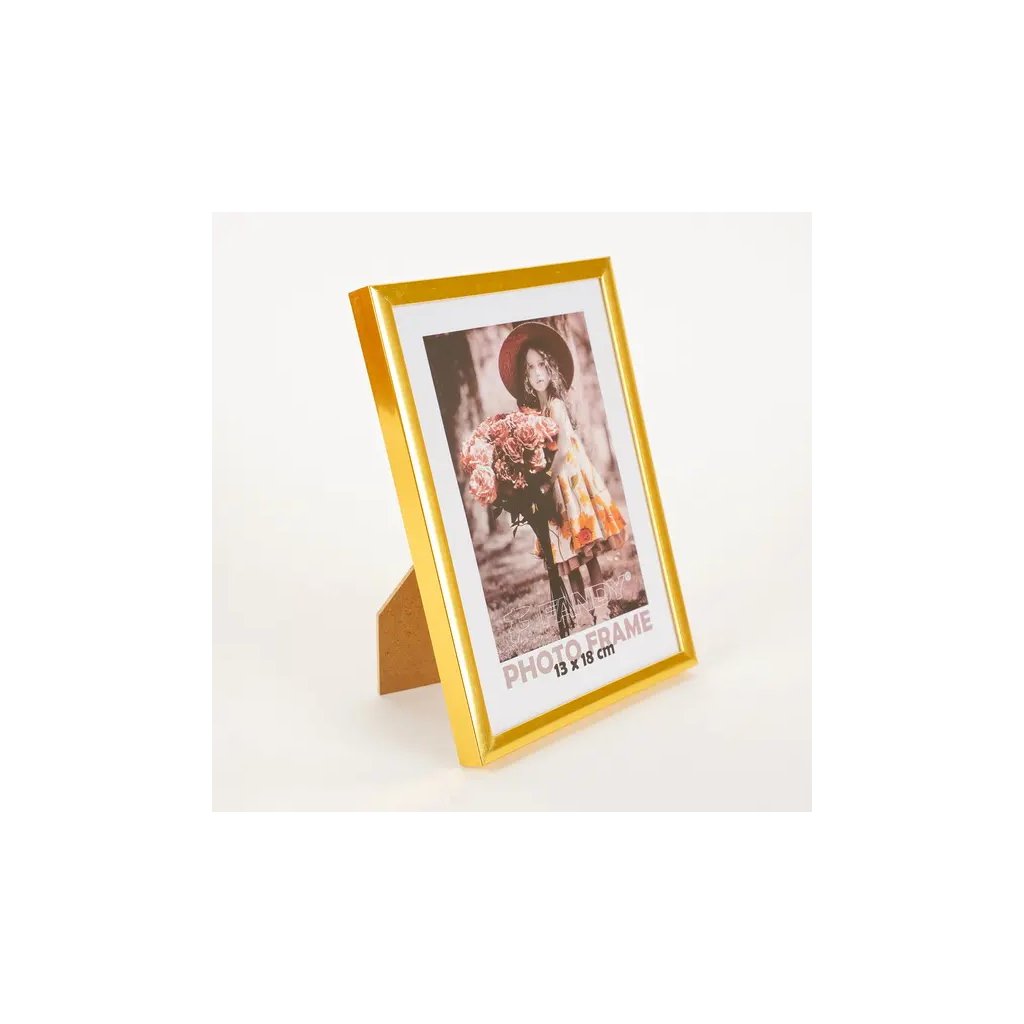 Vzpomínejte na své nejkrásnější okamžiky s tímto elegantním plastovým fotorámečkem Simple v zlatém provedení. Rámeček má jednoduchý, ale nadčasový design, který se hodí do každého interiéru. Je ideální na fotografii o rozměrech 13 x 18 cm. Celý rámeček má rozměr 14 x 19 cm, přičemž šířka lišty je 0,7 cm. Rámeček lze postavit na komodu, poličku nebo noční stolek, a také ho můžete zavěsit na zeď, a to jak horizontálně, tak i vertikálně. Fotografie je chráněna sklem a jednoduše se vkládá ze zadní strany.Doplňkové parametry