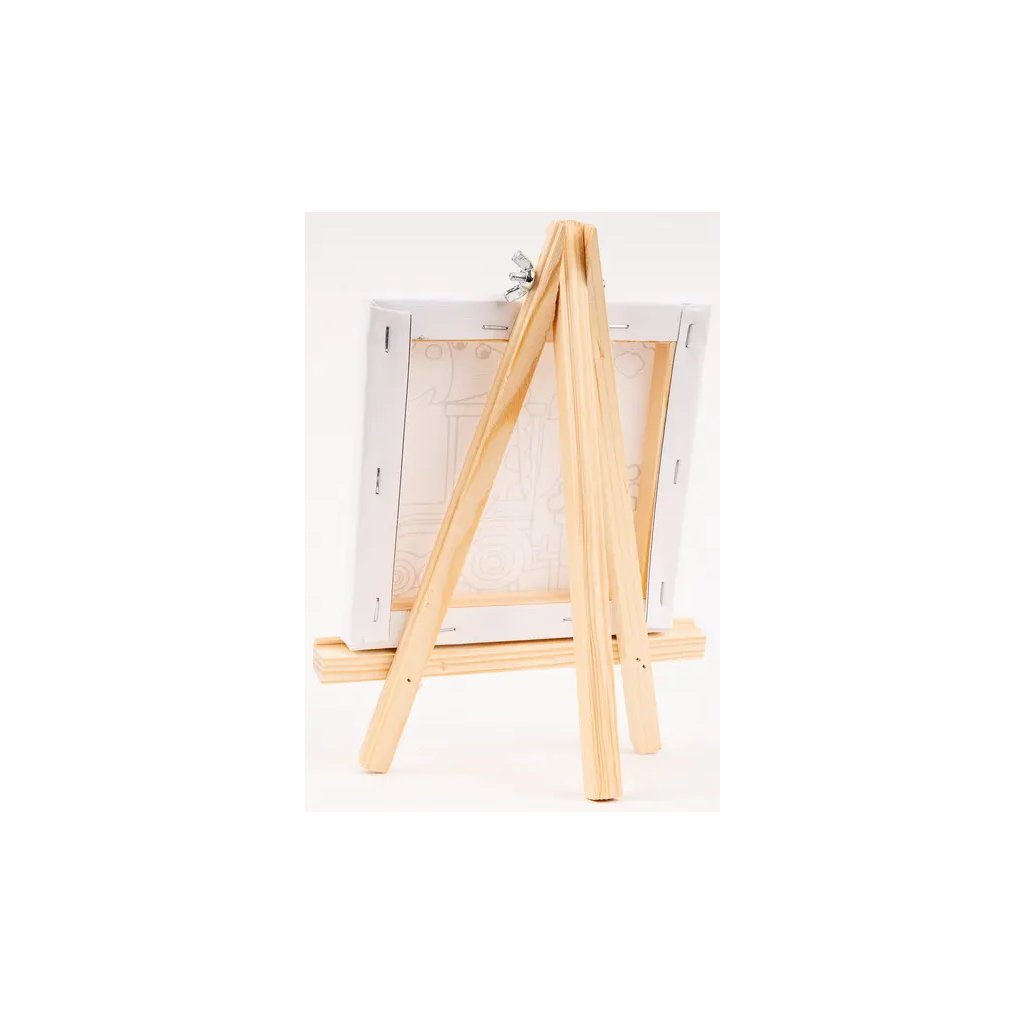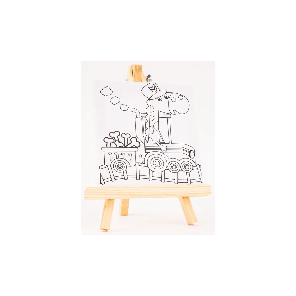 Jedná se o malířské plátno s předtištěným obrázkem žirafy ve vlaku, které je ideální pro začínající umělce a děti. V balení je také dřevěný stojan, na kterém si můžete hotové dílo vystavit. Plátno má jasně bílou barvu a rozměry 15 x 15 cm. Stojánek v motivu dřeva má rozměr 23 x 18 cm. Pro vymalování se dají použít různé techniky, jako jsou akvarelové fixy, akrylové barvy nebo barevné tužky.Doplňkové parametry