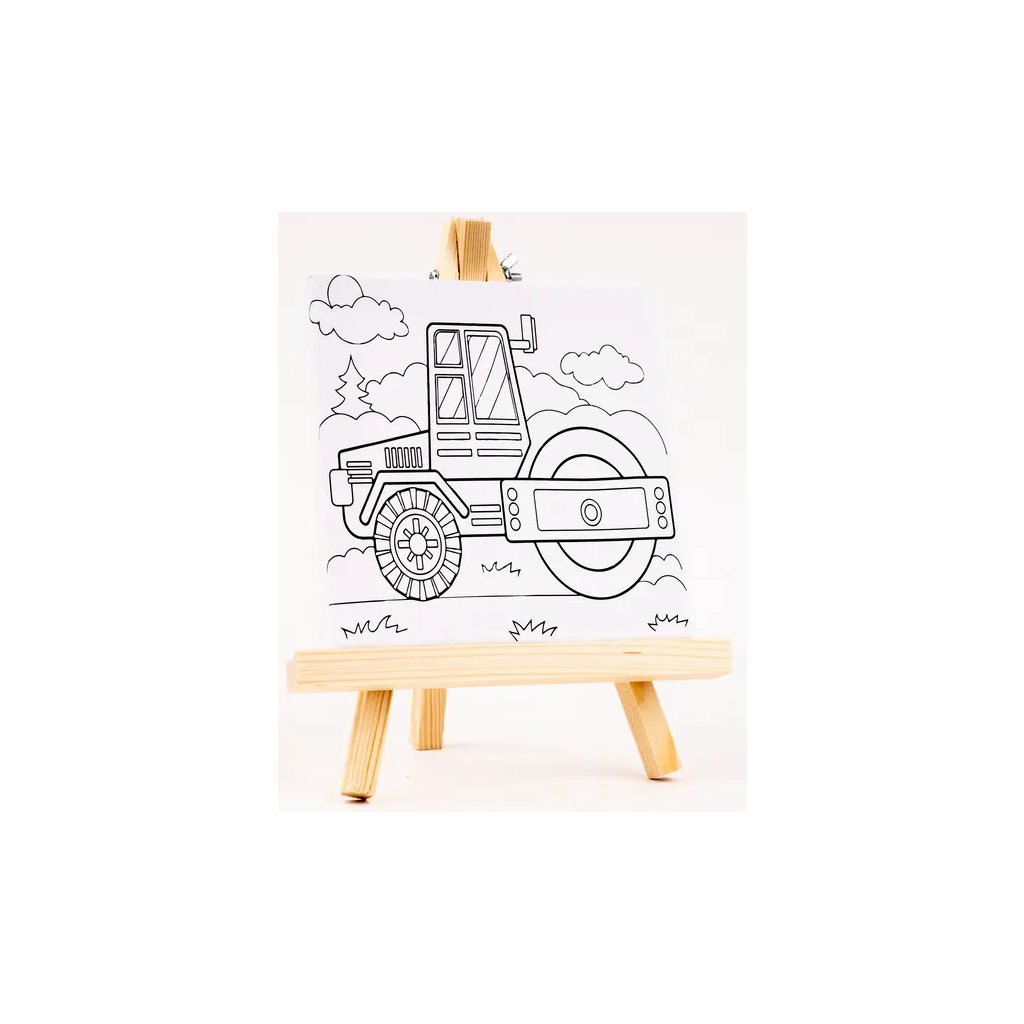 Jedná se o malířské plátno s předtištěným obrázkem traktoru, které je ideální pro začínající umělce a děti. V balení je také dřevěný stojan, na kterém si můžete hotové dílo vystavit. Plátno má jasně bílou barvu a rozměry 15 x 15 cm. Stojánek v motivu dřeva má rozměr 23 x 18 cm. Pro vymalování se dají použít různé techniky, jako jsou akvarelové fixy, akrylové barvy nebo barevné tužky.Doplňkové parametry