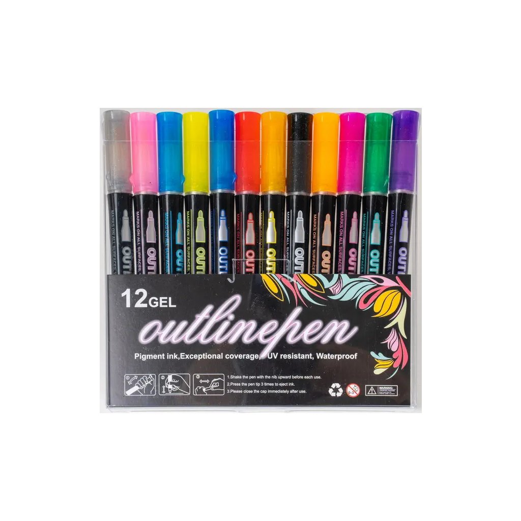 Jedná se o sadu 12 metalických popisovačů Outline Shine s vláknovým hrotem o stopě 3 mm. Popisovače mají pigmentový, UV a voděodolný inkoust, který vytváří dvě barevné linky se stříbrnou vnitřní stopou. Jsou vhodné pro různé druhy povrchů, jako je karton, sklo, keramika, plátno, dekor dřeva, kůže, kamínky a plast. Jsou ideální pro dekorace, kreativní projekty, zdobení kamínků nebo třeba hrníčků.Doplňkové parametry