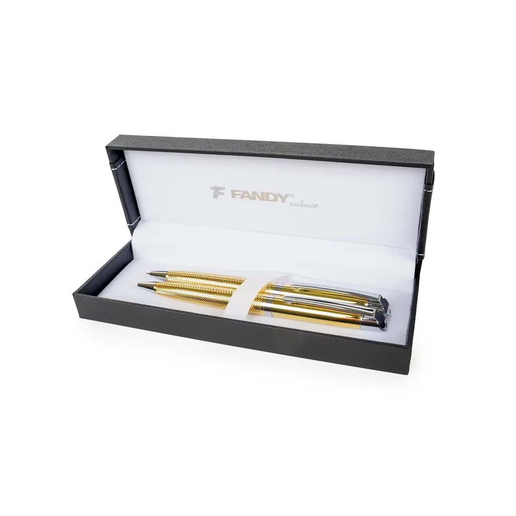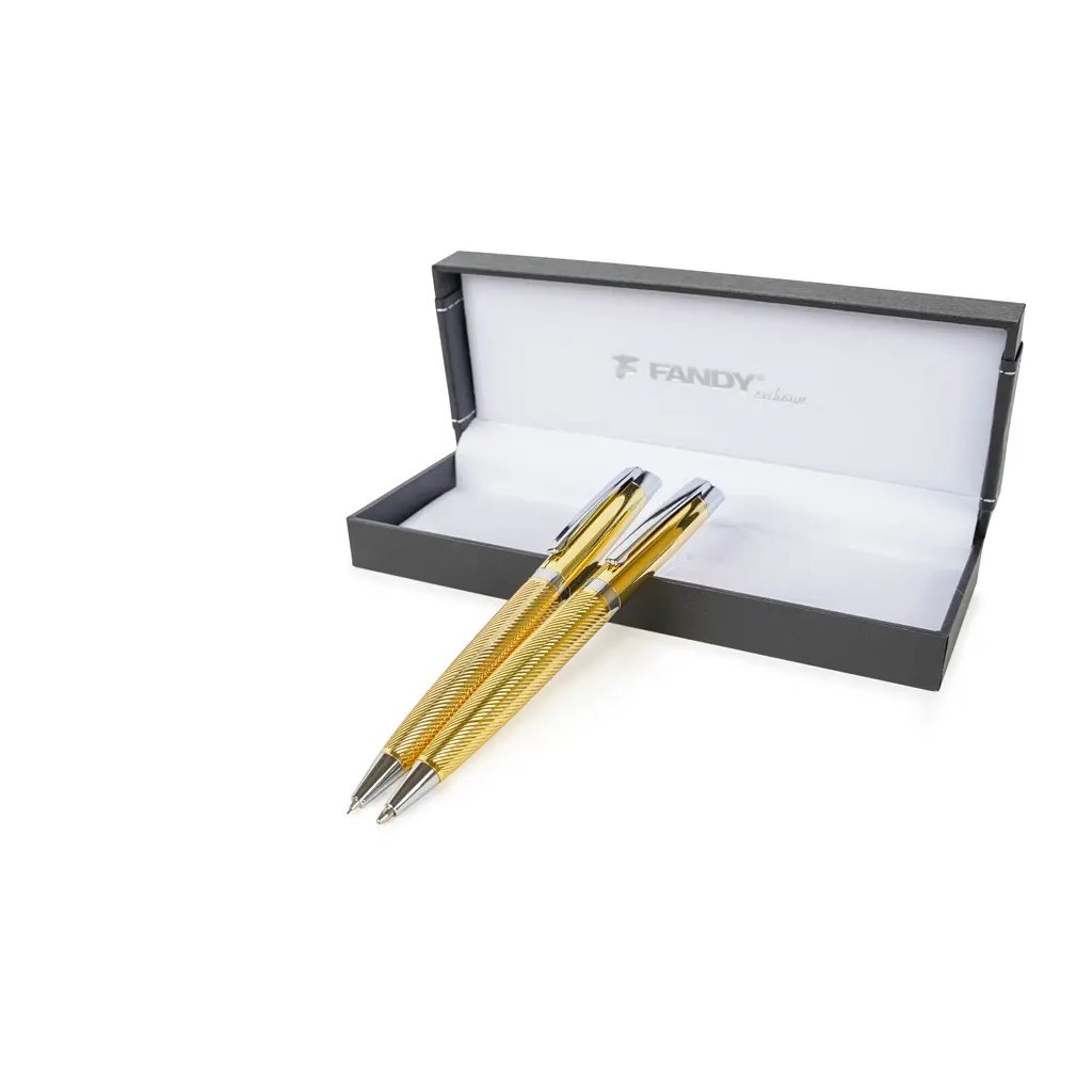 Tato luxusní dárková souprava Aquila ve zlatém designu je ideálním dárkem pro každého, kdo ocení kvalitní psací potřeby. Skládá se z kovového kuličkového pera a mechanické tužky, které jsou uloženy v elegantní dárkové krabičce. Kuličkové pero má otočný mechanismus a používá vyměnitelnou náplň typu F-Parker, která píše modrým inkoustem o šířce stopy 0,7 mm. Mechanická tužka je určena pro tuhy o průměru 0,5 mm. Celý set je dodáván v luxusní dárkové krabičce, což z něj dělá perfektní dárek pro různé příležitosti.Doplňkové parametry