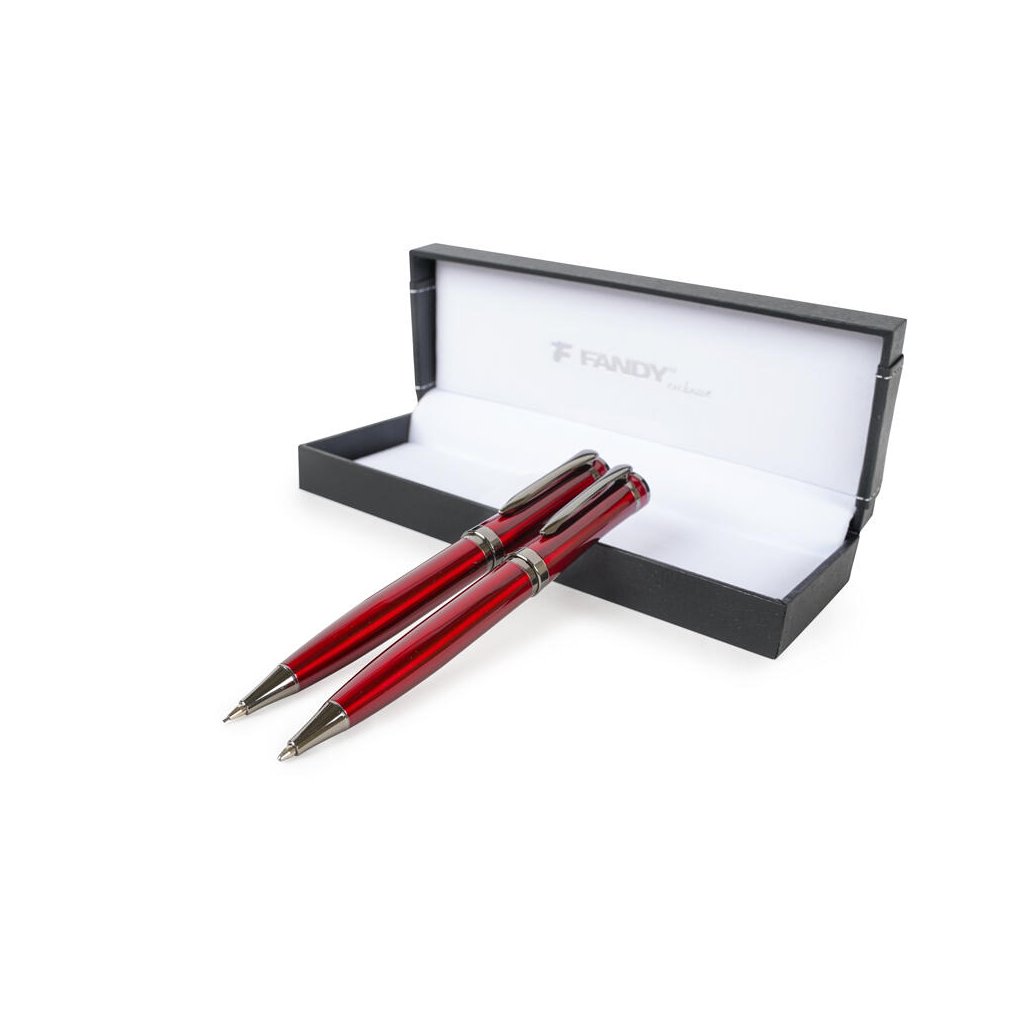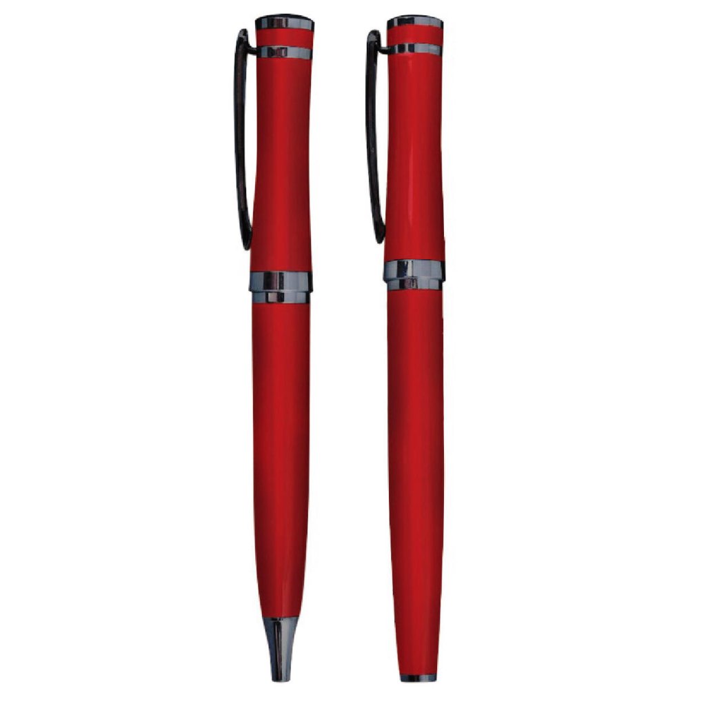 Tato luxusní dárková souprava Rhino je ideálním dárkem pro každého, kdo ocení kvalitní psací potřeby. Skládá se z kovového kuličkového pera a automatické tužky v elegantním červeném designu, které jsou uloženy v elegantní dárkové krabičce. Kuličkové pero má otočný mechanismus a používá vyměnitelnou náplň typu F-Parker, která píše modrým inkoustem o šířce stopy 0,7 mm. Automatická tužka je určena pro tuhy o průměru 0,5 mm. Celý set je dodáván v luxusní dárkové krabičce, což z něj dělá perfektní dárek pro různé příležitosti.Doplňkové parametry