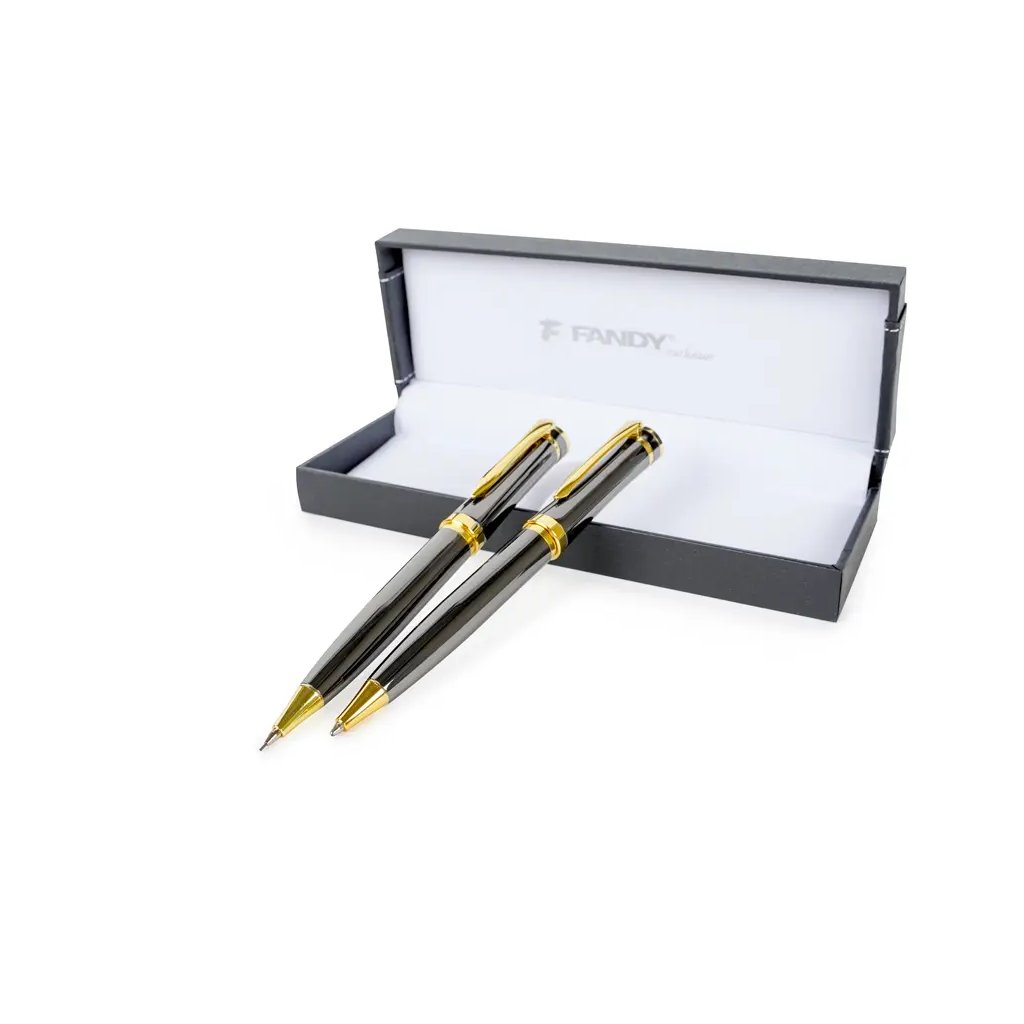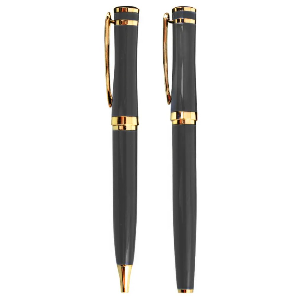 Tato luxusní dárková souprava Rhino je ideálním dárkem pro každého, kdo ocení kvalitní psací potřeby. Skládá se z kovového kuličkového pera a automatické tužky v elegantním šedém designu, které jsou uloženy v elegantní dárkové krabičce. Kuličkové pero má otočný mechanismus a používá vyměnitelnou náplň typu F-Parker, která píše modrým inkoustem o šířce stopy 0,7 mm. Automatická tužka je určena pro tuhy o průměru 0,5 mm. Celý set je dodáván v luxusní dárkové krabičce, což z něj dělá perfektní dárek pro různé příležitosti.Doplňkové parametry