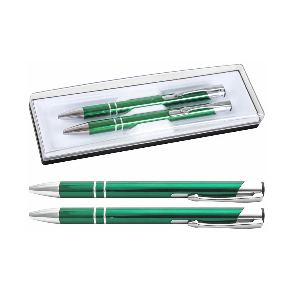 Tato dárková souprava Ving je ideálním dárkem pro každého, kdo ocení kvalitní psací potřeby. Skládá se z kovového kuličkového pera a automatické tužky v elegantním zeleném designu, které jsou uloženy v dárkové krabičce. Kuličkové pero má stiskací mechanismus a používá vyměnitelnou náplň typu F-Parker, která píše modrým inkoustem o šířce stopy 0,7 mm. Automatická tužka je vybavena zasunovacím hrotem a je určena pro tuhy o průměru 0,5 mm. Celý set je dodáván v dárkové krabičce, což z něj dělá perfektní dárek pro různé příležitosti.Doplňkové parametry