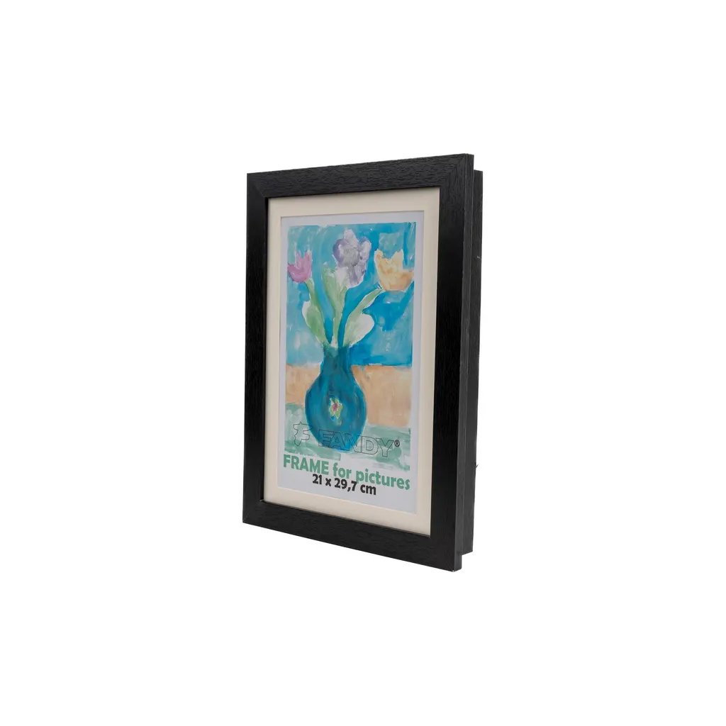Vzpomínejte na své nejkrásnější okamžiky s tímto úložným rámečkem na obrázky Paint. Je ideální na malovaná díla vašich dětí a nabízí dostatek místa, protože do něj můžete uložit až 50 kreseb ve formátu A4. Černý rámeček v dekoru dřeva má otvírací víko, které je kryté fólií. Celý rámeček má rozměry 25,5 x 34,5 cm, hloubku 4 cm. Rámeček lze postavit na komodu, poličku nebo noční stolek, ale také ho můžete zavěsit na zeď.Doplňkové parametry