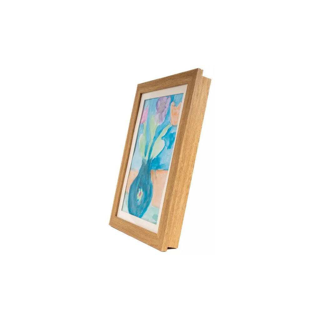 Vzpomínejte na své nejkrásnější okamžiky s tímto úložným rámečkem na obrázky Paint. Je ideální na malovaná díla vašich dětí a nabízí dostatek místa, protože do něj můžete uložit až 50 kreseb ve formátu A4. Světlé hnědý rámeček v dekoru dřeva má otvírací víko, které je kryté fólií. Celý rámeček má rozměry 25,5 x 34,5 cm, hloubku 4 cm. Rámeček lze postavit na komodu, poličku nebo noční stolek, ale také ho můžete zavěsit na zeď.Doplňkové parametry
