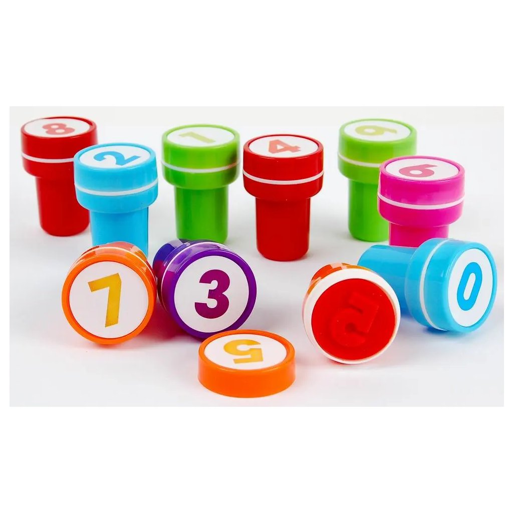 Jedná se o sadu 10 dětských samotiskacích razítek s číslicemi. Razítka mají průměr tisku přibližně 2 cm a každé razítko má jiný motiv číslice. V sadě se nachází 6 různých barev. Razítka se dají jednoduše použít a jsou ideální pro děti, které se učí počítat, nebo pro různé kreativní projekty, zdobení a hraní.Doplňkové parametry