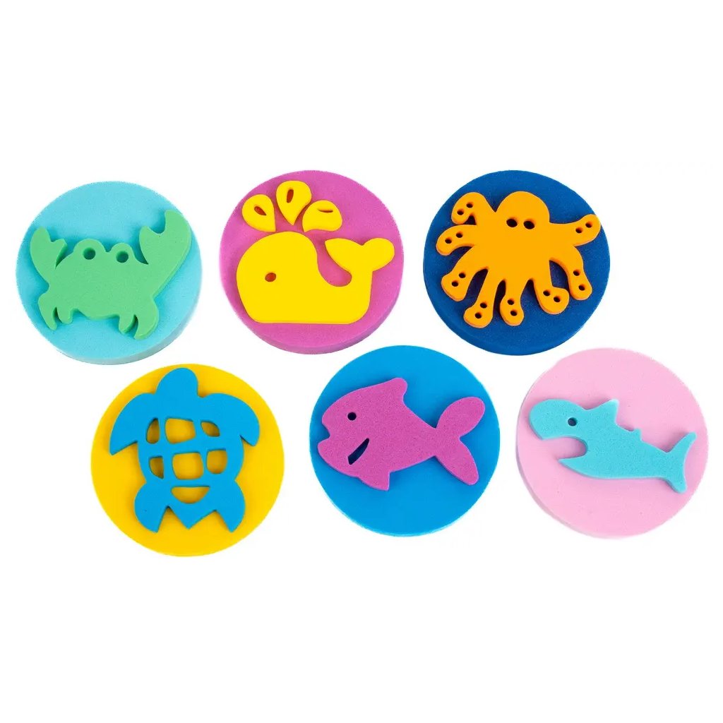 Jedná se o sadu 6 dětských razítek s motivy zvířátek, jejichž materiál je pryž. Razítka mají průměr tisku přibližně 5 cm a každé razítko má jiný motiv zvířátka. V sadě se nachází 6 různých barev. Razítka se dají jednoduše použít a jsou ideální pro děti na hraní, zdobení a různé kreativní projekty. Je možné je namáčet do různých typů barev a inkoustů, například do razítkovacích podušek, prstových barev, akrylových barev nebo temper, ale poduška ani inkoust nejsou součástí balení.Doplňkové parametry