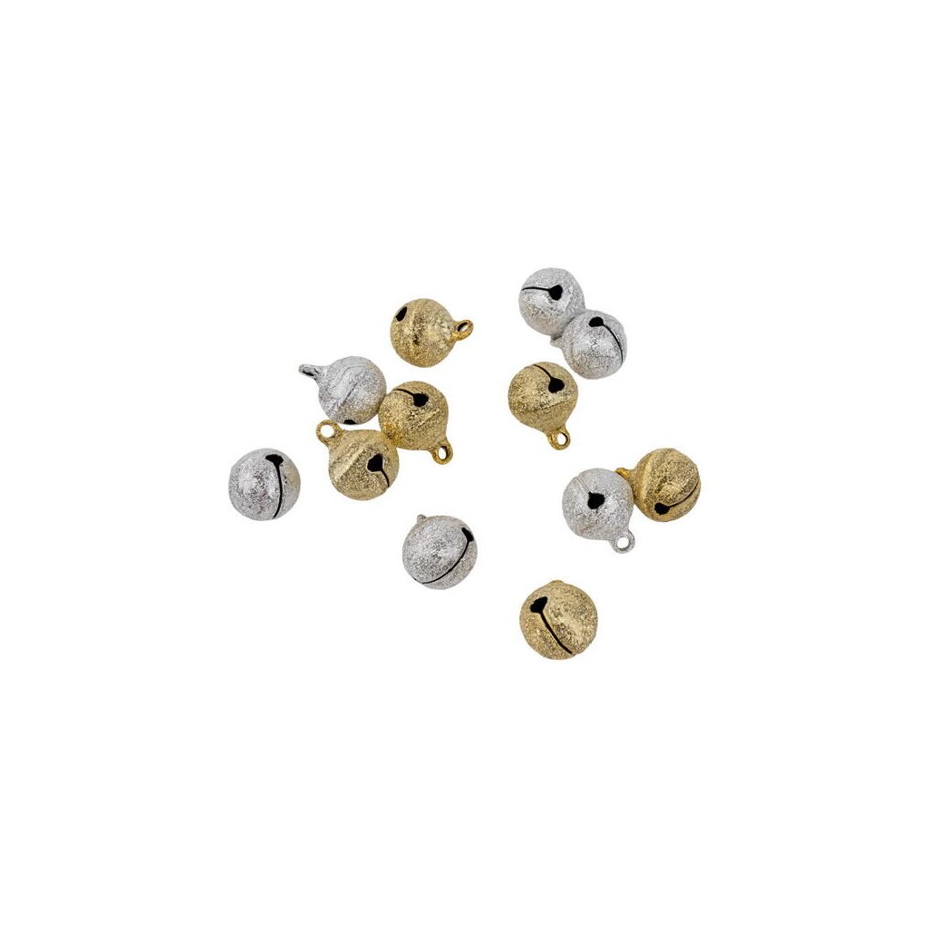 Jedná se o sadu 12 ks kovových rolniček v zlaté a stříbrné barvě s třpytivým efektem. Rolničky mají velikost cca 1,4 cm a jsou ideální pro zavěšení na vánoční stromek, ozdobení dárků, adventních věnců nebo pro různé kreativní projekty.Doplňkové parametry