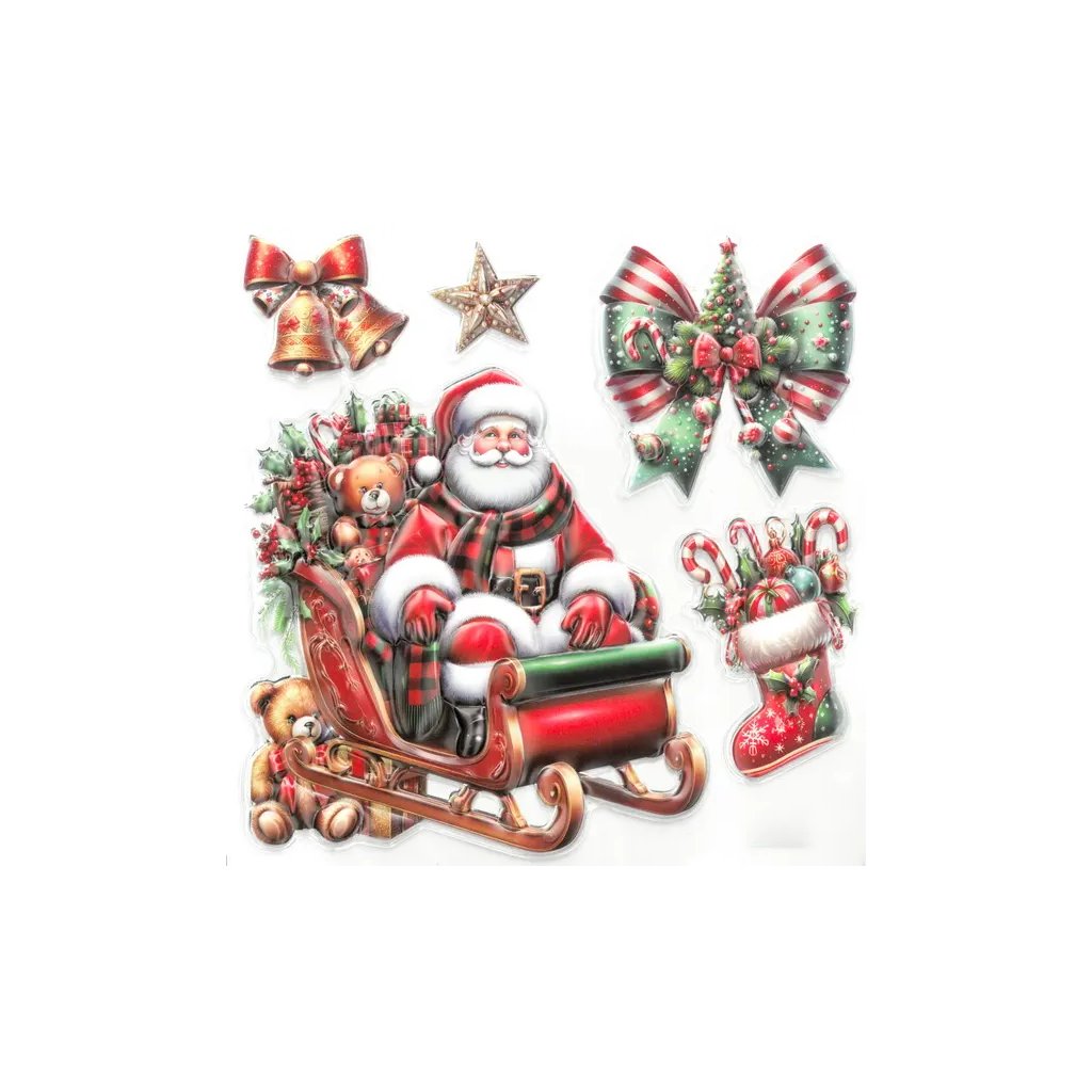 Jedná se o dekoraci na okna bez lepidla, která drží na hladkých plochách (okna, zrcadla, dveře) díky svým elektrostatickým vlastnostem. Ideální pro snadné a opakované sezónní zdobení. Arch o velikosti cca 19 x 19 cm obsahuje několik jednotlivých 3D samolepek s veselými vánočními motivy.Doplňkové parametry