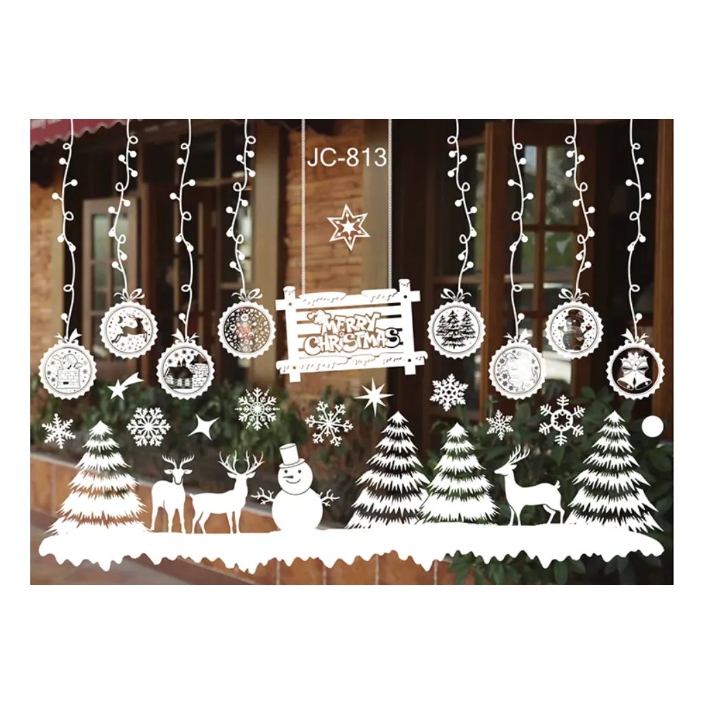 Jedná se o dekoraci na okna bez lepidla, která drží na hladkých plochách (okna, zrcadla, dveře) díky svým elektrostatickým vlastnostem. Ideální pro snadné a opakované sezónní zdobení. Set obsahuje 2 archy o velikosti 35 x 50 cm s několika jednotlivými samolepkami ve stylu zimní a vánoční krajiny. Motiv v bílé barvě zahrnuje zasněžené stromečky, soby, sněhuláka, vánoční koule a nápis "Merry Christmas", čímž skvěle imituje mráz.Doplňkové parametry