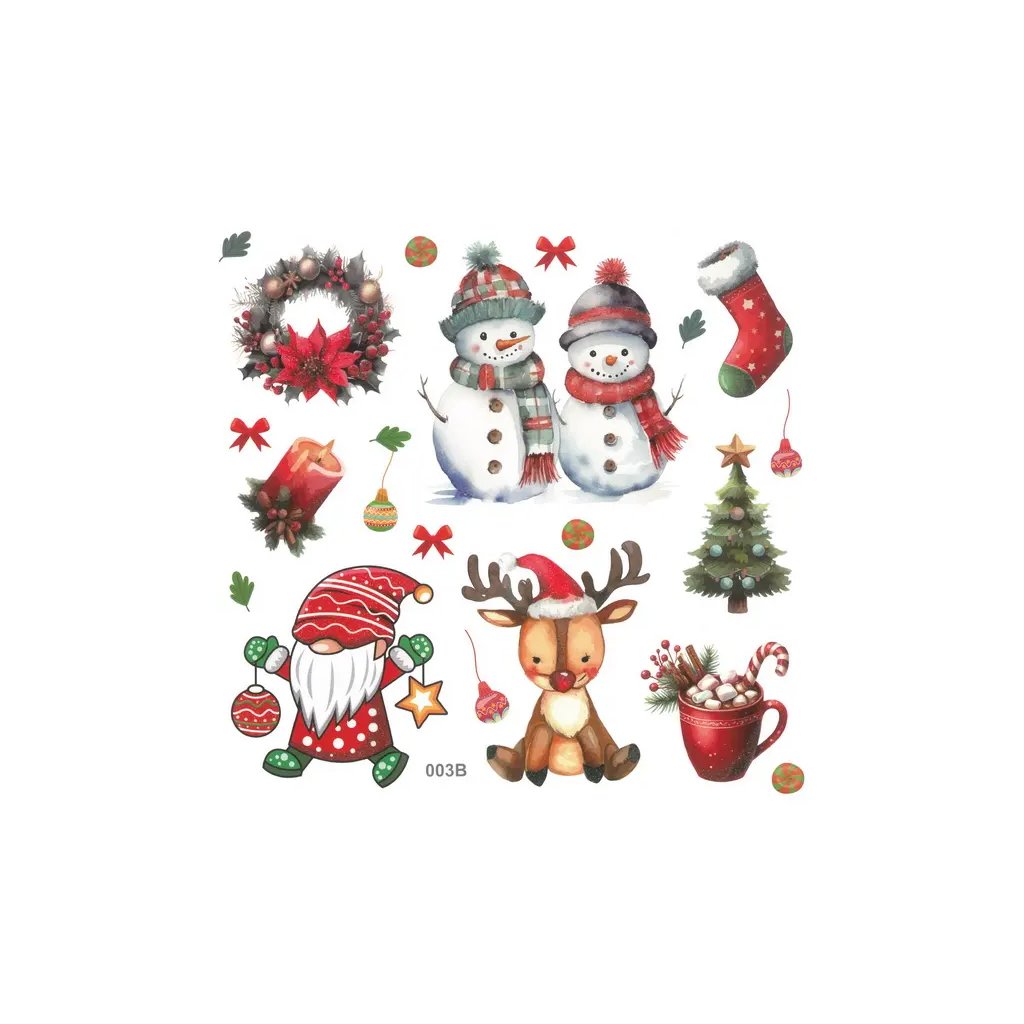 Jedná se o arch s 9 papírovými samolepkami s veselými vánočními a zimními motivy. Motivy zahrnují roztomilá zvířátka v barevných čepicích a šálách, jako je medvěd, liška, sova, mýval, tučňák a žirafa, doplněné sněhovými vločkami a stromečky. Samolepky jsou ideální na dekoraci balíčků, vánočních přání, deníků nebo na tvoření. Rozměr celého archu je 18 x 19 cm a velikost jednotlivých samolepek se pohybuje od 2 do 9 cm.Doplňkové parametry
