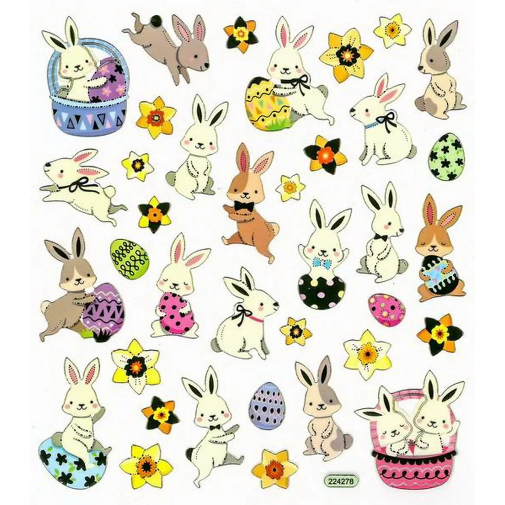 Jedná se o 37 kusů papírových samolepek s motivem králíčků a jarních květin. Velikost jedné samolepky je přibližně 3 cm a celá sada je na archu o rozměru 15 x 17 cm. Samolepky jsou ideální pro dekoraci přáníček, dárků, deníků, fotoalb, scrapbookingových projektů a jiných jarních kreativních výtvorů.Doplňkové parametry