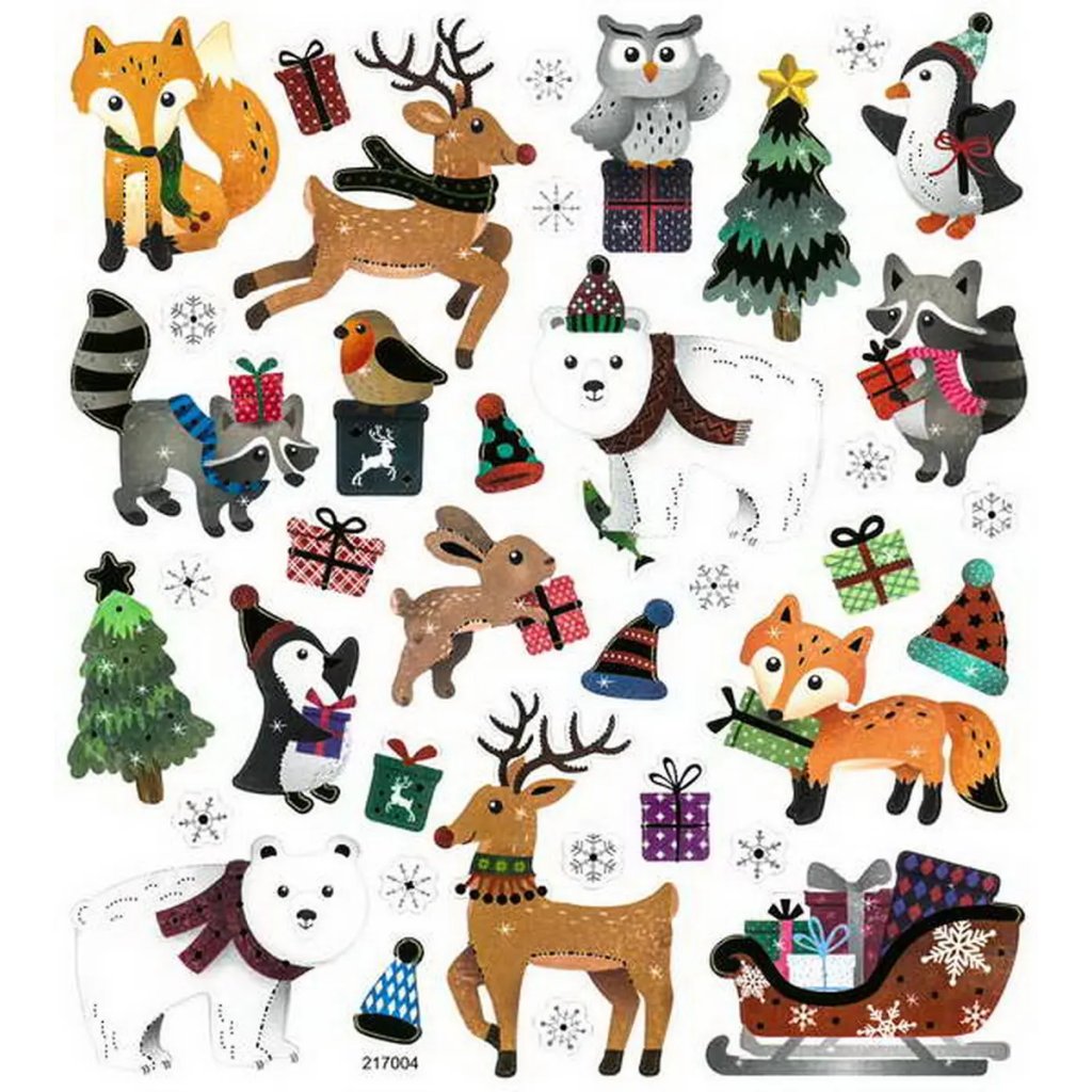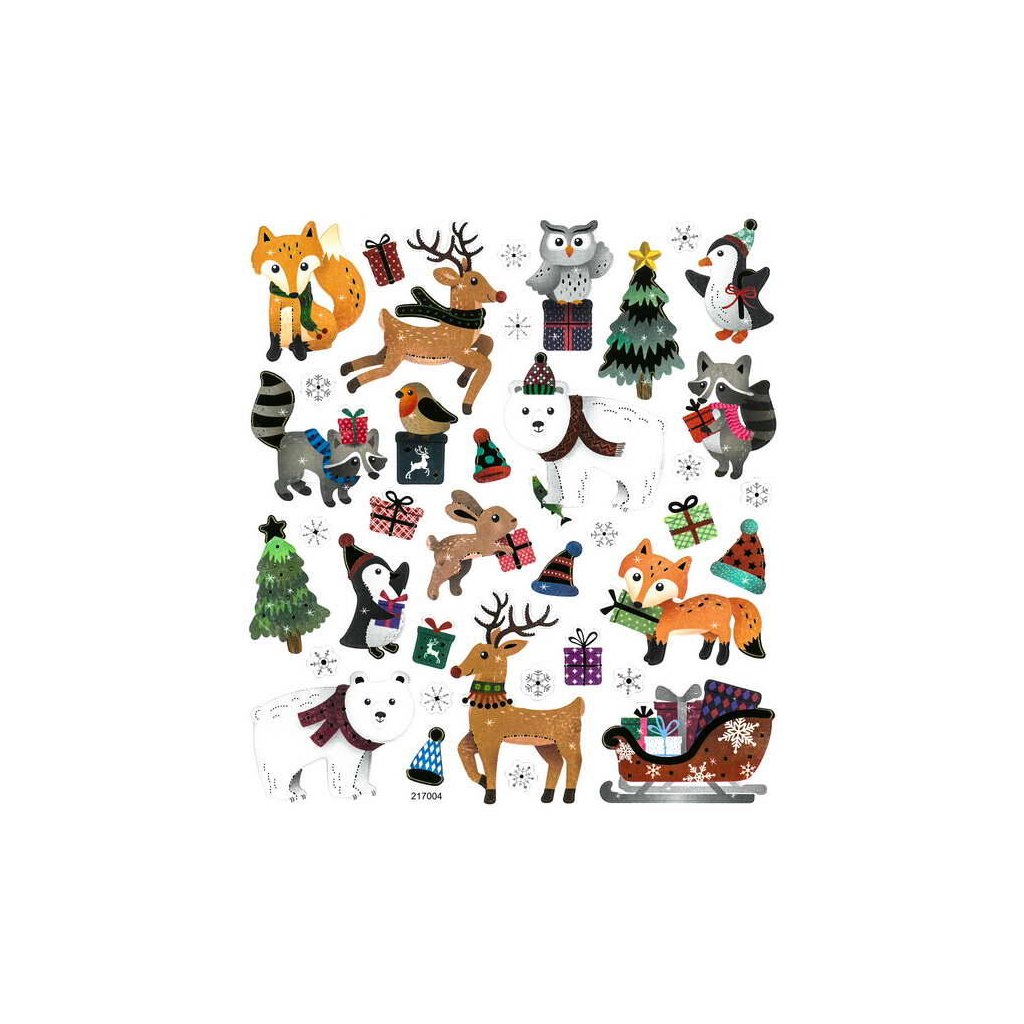 Papírové samolepky s motivem zvířátek a zimy jsou obsaženy v sadě 35 kusů. Mezi motivy najdeme soby, polární medvědy, lišky, mývaly, tučňáky a sovy, ale také vánoční stromky a dárky. Velikost jednotlivých samolepek se pohybuje od 1 do 4 cm a jsou umístěny na archu o rozměru 15 x 17 cm. Jsou ideální pro dekoraci přáníček, dárků, deníků, fotoalb, scrapbookingových projektů a dalších kreativních vánočních výtvorů.Doplňkové parametry