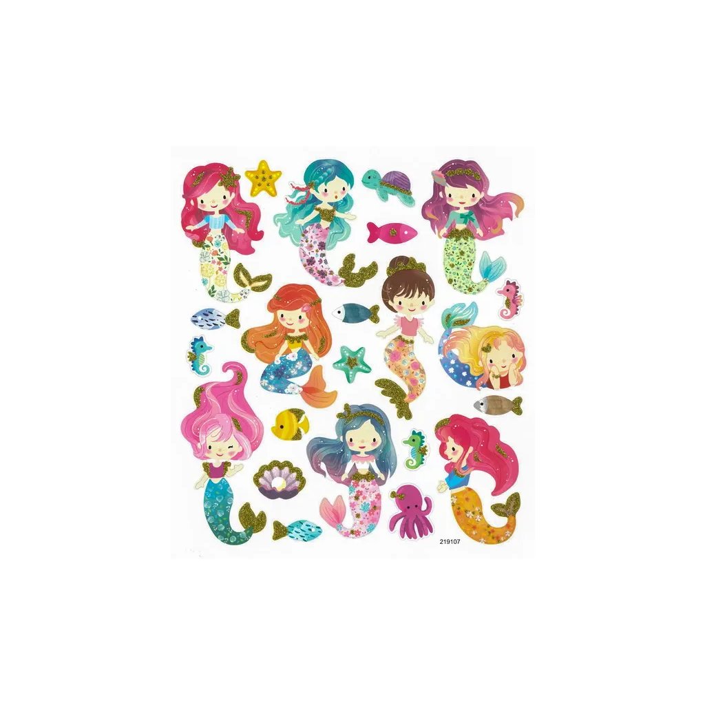 Papírové samolepky s motivem mořských panen a podmořského světa jsou obsaženy v sadě 23 kusů. Mezi motivy najdeme mořské panny, mořské koníky, želvy, chobotnice, ryby, mušle a hvězdice. Samolepky jsou umístěny na archu o rozměru 15 x 17 cm. Jsou ideální pro dekoraci přáníček, dárků, deníků, fotoalb, scrapbookingových projektů a dalších kreativních výtvorů.Doplňkové parametry