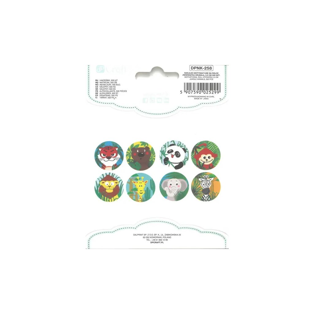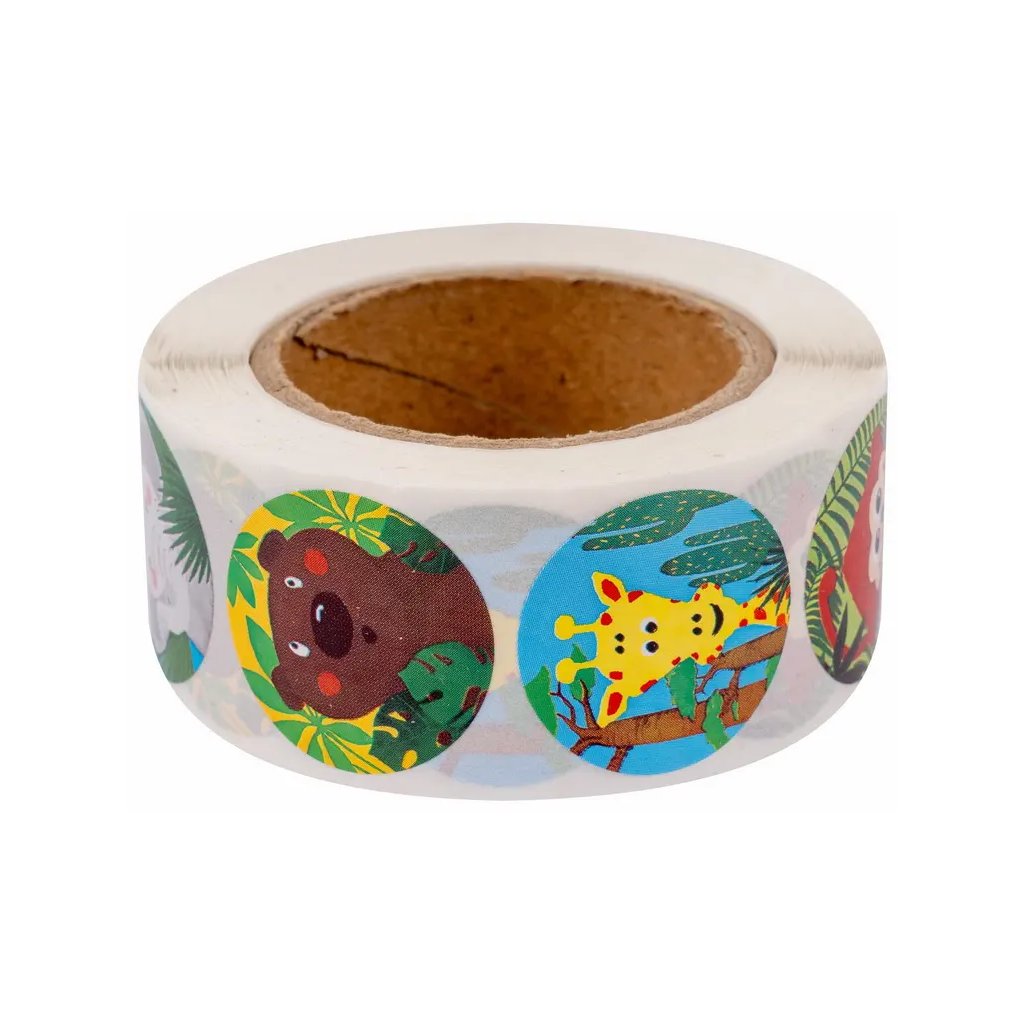 Papírové samolepky na rolce s motivem zvířátek z džungle jsou obsaženy v balení 500 kusů, přičemž najdeme 8 různých motivů. Mezi zvířátky jsou tygr, medvěd, panda, opička, lev, žirafa, slon a zebra. Samolepky mají průměr 2,5 cm a jsou ideální pro dekoraci přáníček, dárků, deníků, fotoalb, scrapbookingových projektů a dalších kreativních výtvorů.Doplňkové parametry