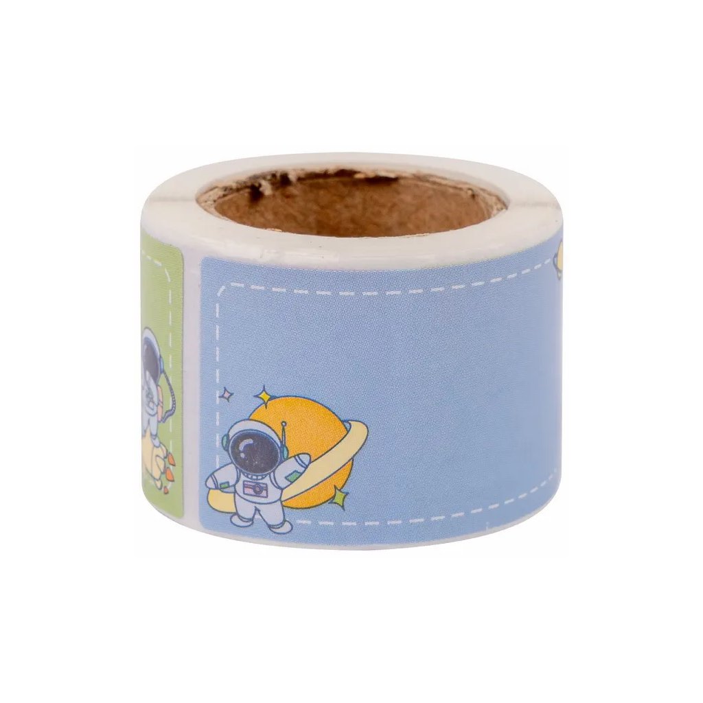 Papírové etikety na rolce s motivem vesmíru jsou obsaženy v balení 100 kusů, přičemž najdete 4 různé vzory. Etikety s obrázky astronautů, planet, raket a hvězd mají rozměr 4,5 x 2,5 cm a jsou ideální na označování sešitů, učebnic, ale i dárků a balíčků.Doplňkové parametry