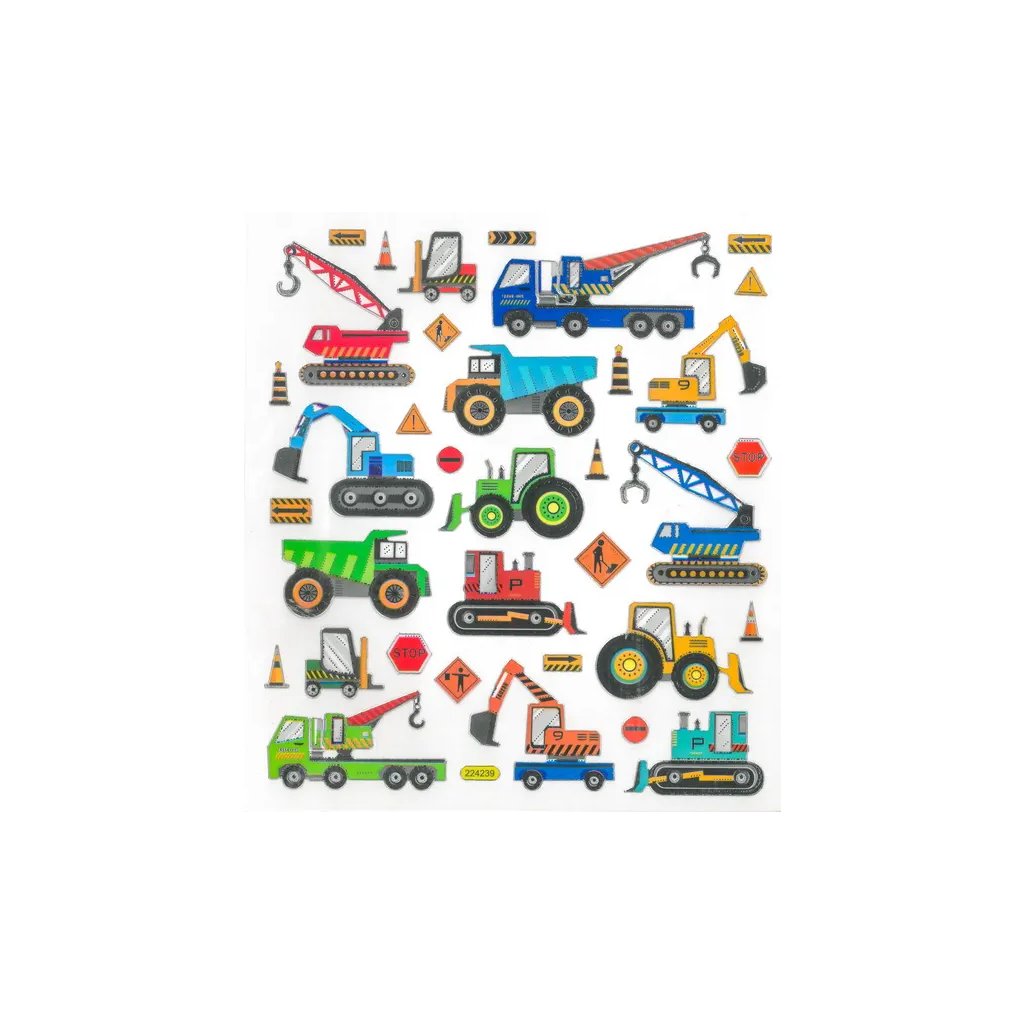 Papírové samolepky s motivem stavebních vozidel jsou obsaženy v sadě 35 kusů. Najdeme zde různé bagry, jeřáby, nákladní auta, traktory a dopravní kužely. Velikost jednotlivých samolepek je přibližně 3 cm a jsou umístěny na archu o rozměru 15 x 17 cm. Jsou ideální pro dekoraci přáníček, dárků, deníků, fotoalb, scrapbookingových projektů a dalších kreativních výtvorů.Doplňkové parametry