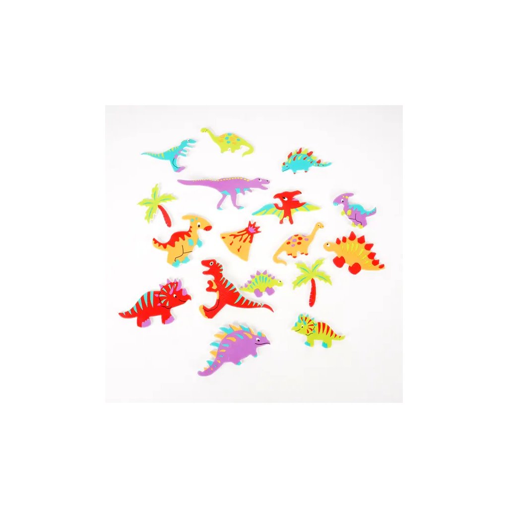 Pěnové samolepky s motivem dinosaurů jsou obsaženy v balení 30 kusů. Najdeme zde různé dinosaury, palmy a sopky v pestrých barvách. Velikost jednotlivých samolepek se pohybuje od 2,5 cm do 5 cm, tloušťka je 2 mm. Tyto samolepky jsou ideální pro dekoraci dětských pokojů, přáníček, dárků, deníků, fotoalb, scrapbookingových projektů a dalších kreativních výtvorů.Doplňkové parametry