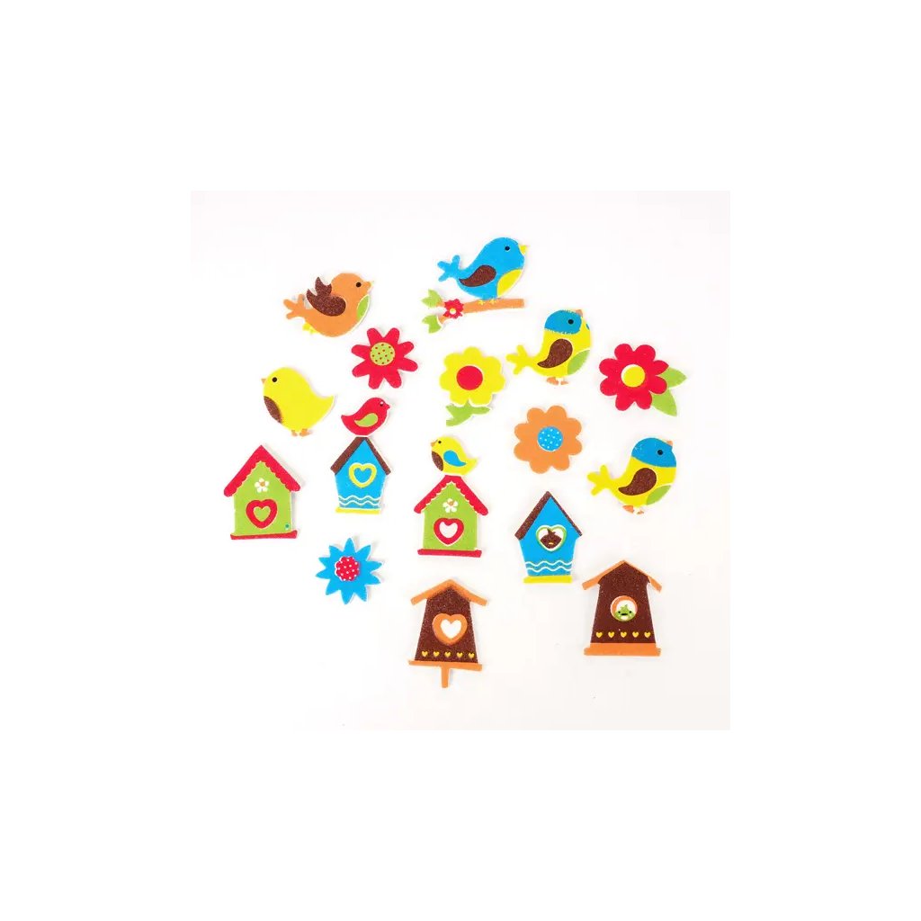 Pěnové samolepky s motivem ptáčků jsou obsaženy v balení 30 kusů. Najdeme zde ptáčky v různých barvách, doplněné domečky pro ptáky a květinami. Velikost jednotlivých samolepek se pohybuje od 2,5 cm do 5 cm, tloušťka je 2 mm. Tyto samolepky jsou ideální pro dekoraci dětských pokojů, přáníček, dárků, deníků, fotoalb, scrapbookingových projektů a dalších kreativních výtvorů.Doplňkové parametry
