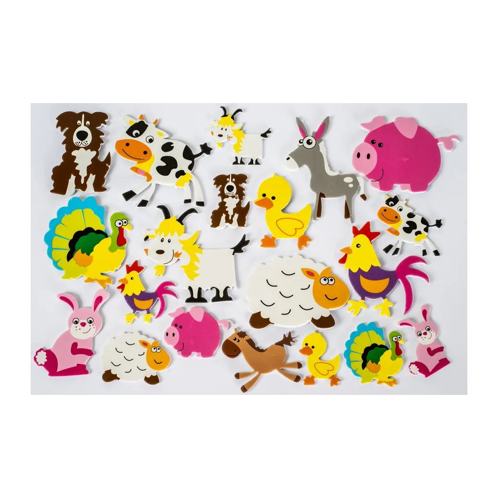 Pěnové samolepky s motivem farmy jsou obsaženy v balení 20 kusů. Najdeme zde kravičku, pejska, oslíka, prasátko, krocana, kozu, ovečku, slepici, kachničku, zajíčka a koníka. Velikost jednotlivých samolepek je přibližně 3 cm, tloušťka je 2 mm. Tyto samolepky jsou ideální pro dekoraci dětských pokojů, přáníček, dárků, deníků, fotoalb, scrapbookingových projektů a dalších kreativních výtvorů.Doplňkové parametry