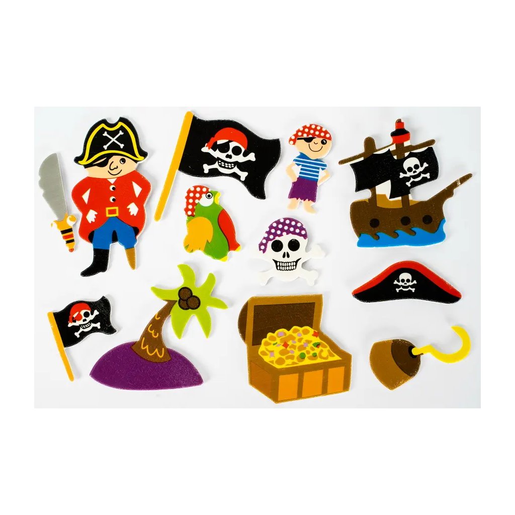 Pěnové samolepky s motivem pirátů jsou obsaženy v balení 20 kusů. Najdeme zde piráty, pirátskou loď, truhlu s pokladem, vlajky, papouška, kokosovou palmu a pirátské symboly jako lebka se zkříženými hnáty a háky. Velikost jednotlivých samolepek je přibližně 3 cm, tloušťka je 2 mm. Tyto samolepky jsou ideální pro dekoraci dětských pokojů, přáníček, dárků, deníků, fotoalb, scrapbookingových projektů a dalších kreativních výtvorůDoplňkové parametry