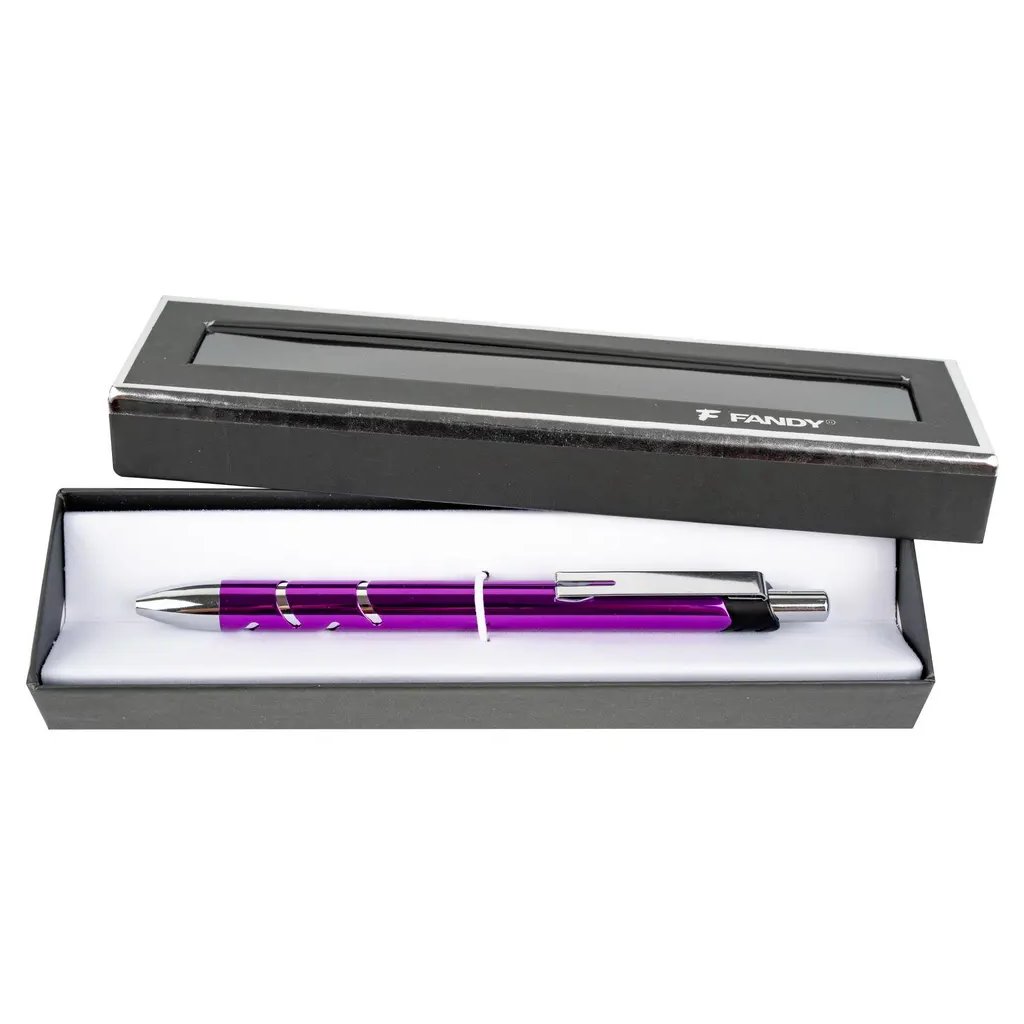 Tato dárková souprava Tally je ideálním dárkem pro každého, kdo ocení elegantní a kvalitní psací potřeby. Skládá se z celokovového kuličkového pera v elegantním fialovém designu se stříbrným lesklým hrotem a klipem, které je uloženo v dárkové krabičce. Pero má stiskací mechanismus a používá vyměnitelnou náplň typu F-411, která píše modrým inkoustem o šířce stopy 0,7 mm. Celý set je dodáván v dárkové krabičce, což z něj dělá perfektní dárek pro různé příležitosti.Doplňkové parametry