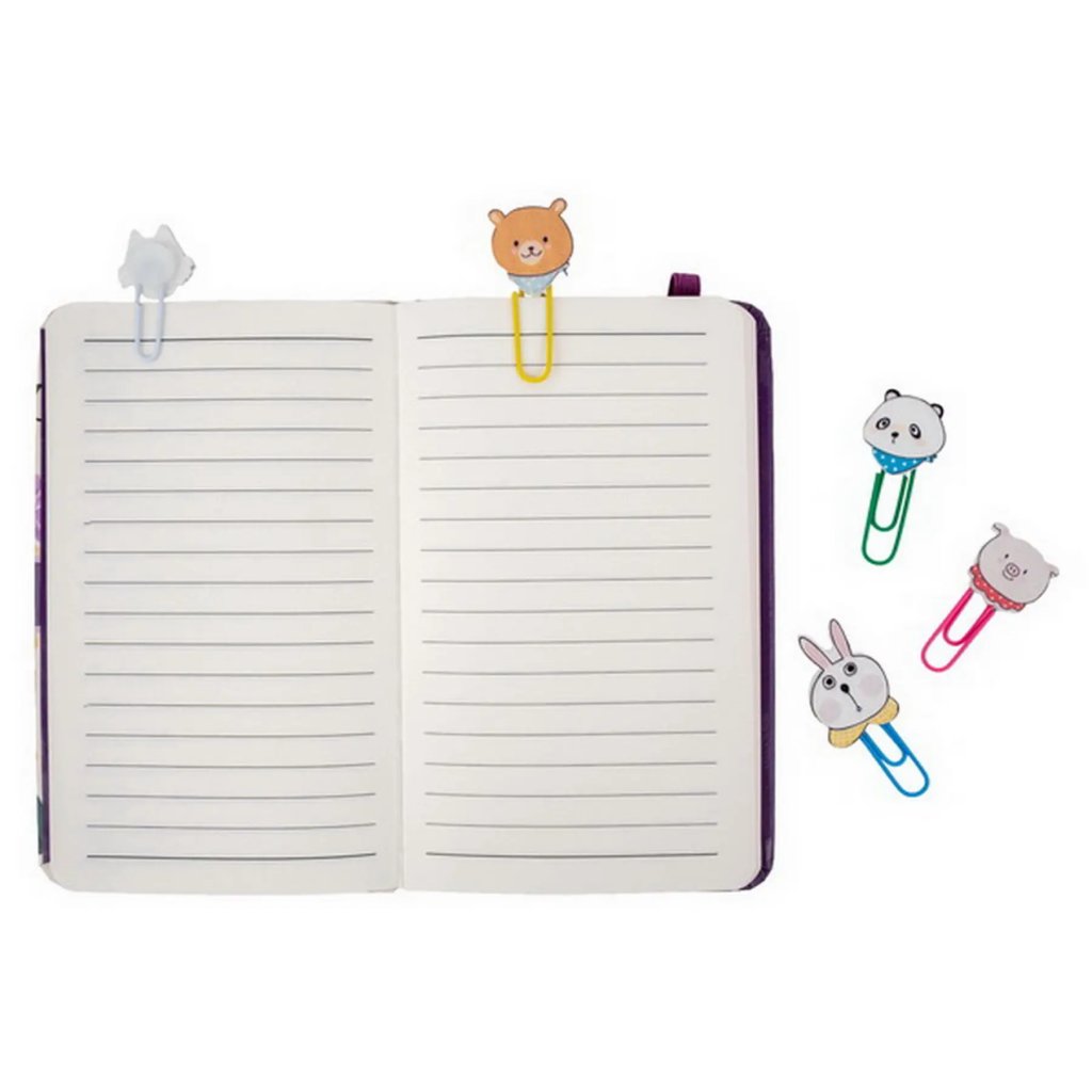 Jedná se o sadu 10 ks veselých dopisních spon s dekorační dřevěnou aplikací. Dřevěná aplikace má tvar roztomilých zvířátek, jako jsou prasátka, medvídci, pandy, lišky a králíčci, často doplněných šátky a vyvedených v pastelových barvách. Samotné spony jsou kovové a barevně sladěné se zvířátky (růžová, žlutá, zelená, bílá, modrá). Spona má délku 4,5 cm. Jsou ideální pro organizaci dokumentů, školních prací nebo jako originální záložky do knih.Doplňkové parametry