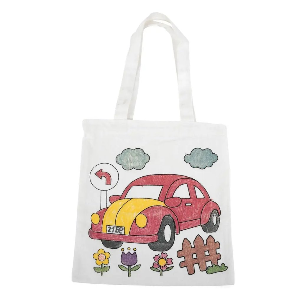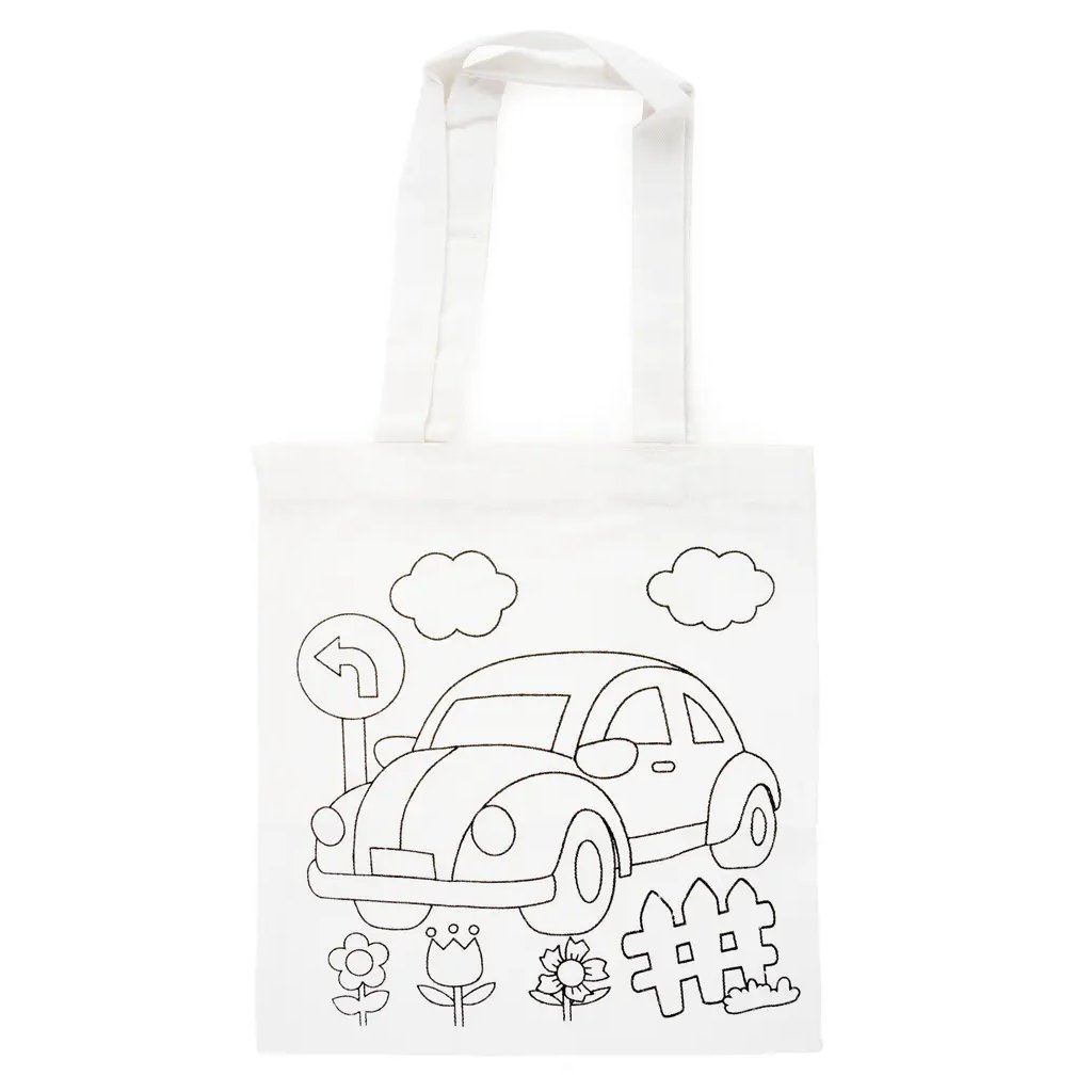 Jedná se o plátěnou tašku v bílé barvě s předlohou pro vymalování. Taška má rozměry 27 x 29 cm a je ideální pro kreativní tvoření. Na tašce je předloha s motivem auta v krajině s květinami a dopravní značkou. Tašku lze vybarvit různými technikami, jako jsou textilní fixy nebo barvy na textil. Při vybarvování libovolnou technikou doporučujeme vložit dovnitř tašky hrubší papír nebo třeba noviny, aby barva neprosákla na druhou stranu tašky.Doplňkové parametry