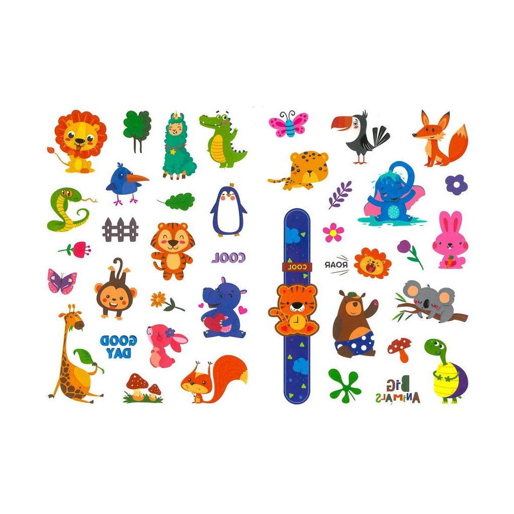 Jedná se o sadu 40 kusů tetovacích samolepek s motivem různých zvířátek, které svítí ve tmě. Samolepky jsou rozděleny na dva archy o rozměrech 12 x 17,5 cm a mezi motivy patří sloni, lvi, žirafy, opice a ptáčci. Tyto samolepky se skvěle hodí na dětské narozeninové oslavy, karnevaly nebo jen tak pro zábavu.Doplňkové parametry