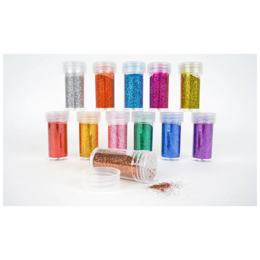 Jedná se o sadu 12 tub s jemným glitterovým práškem, třpytkami, které jsou určeny pro dekoraci. Celkem je v balení 12 tub po 10 g ve dvanácti různých barvách. Prášek se používá v kombinaci s lepidlem a je vynikajícím doplňkem pro různé tvůrčí činnosti, scrapbooking a cardmaking. Je určen pro dekoraci papíru, lepenky, dřeva a jiných povrchů.Doplňkové parametry