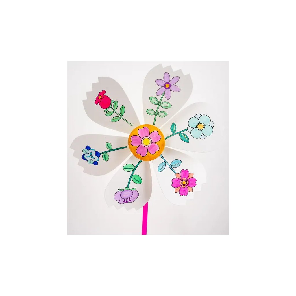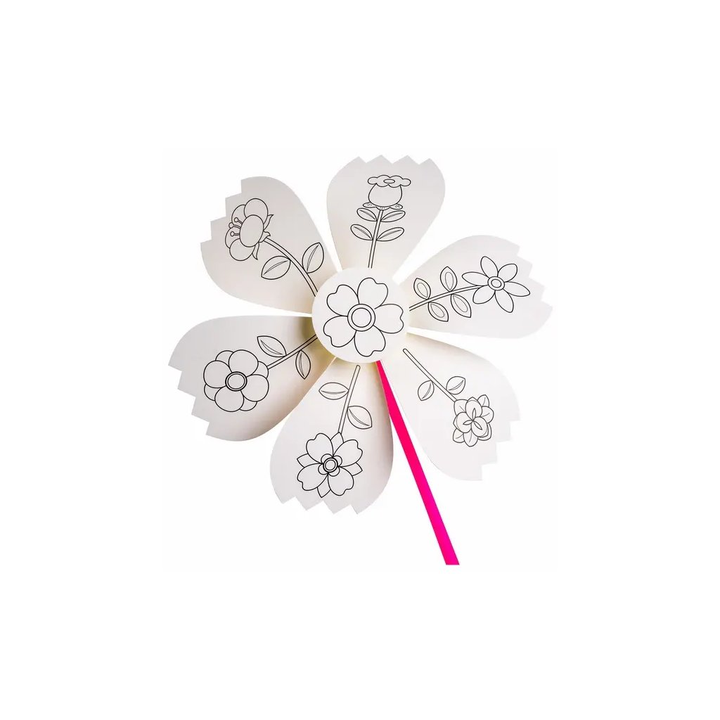 Jedná se o papírový větrník s předlohou pro vymalování s motivem květin, který je ideální k dekoraci. Větrník se skládá ze 6 cípů, středového kolečka a tyčky. Celková délka složeného větrníku je 38,5 cm. Děti si mohou větrník vybarvit dle vlastní fantazie a poté ho složit. Motivy k vymalování zahrnují různé typy květin s listy a stonky.Buďte první, kdo napíše příspěvek k této položce.